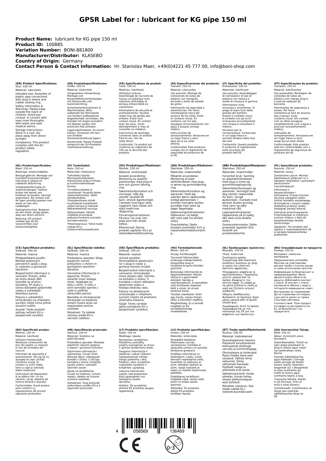 KG Rohr Gleitmittel 150ml, Montage Gleitmittel, Rohr Gleitmittel