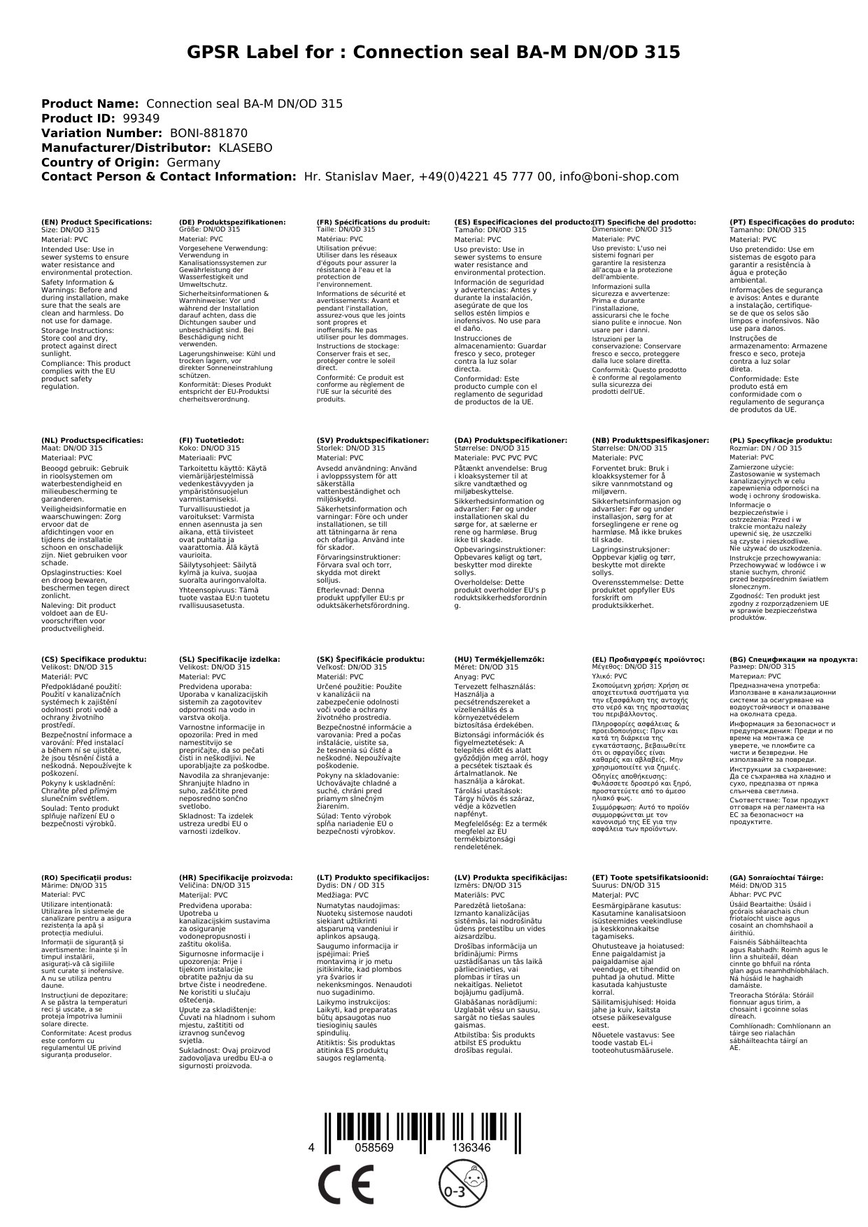 | Elastomer | DN 315 | DIN EN 13476-2, DIN EN 1401-1 |