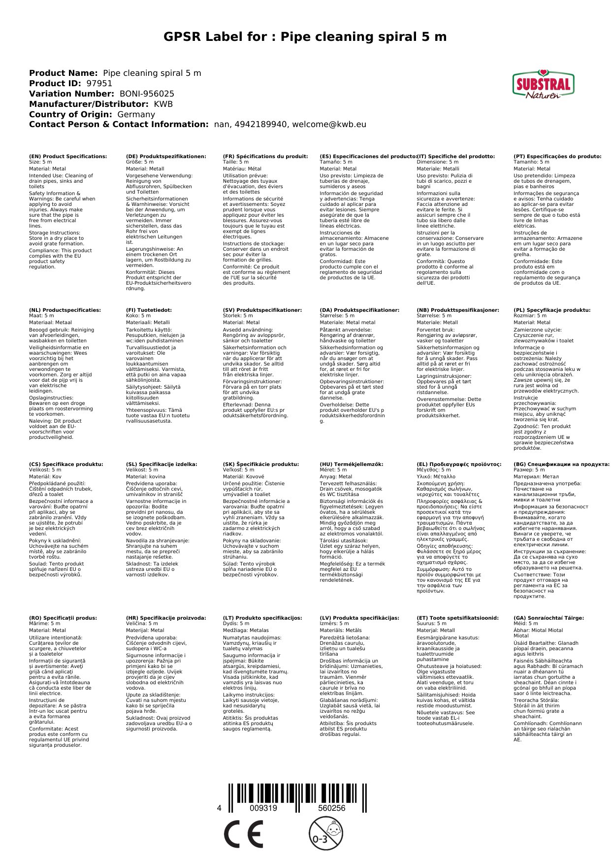 Mit unserer 5 m Rohrreinigungsspirale befreien Sie Ihre Rohre schnell und einfach von Verstopfungen. Egal ob im Waschbecken, in der Toilette oder Dusche – die flexible Spirale erreicht auch schwer zugängliche Stellen. So sparen Sie Zeit und Geld für teure Rohrreinigungsdienste.