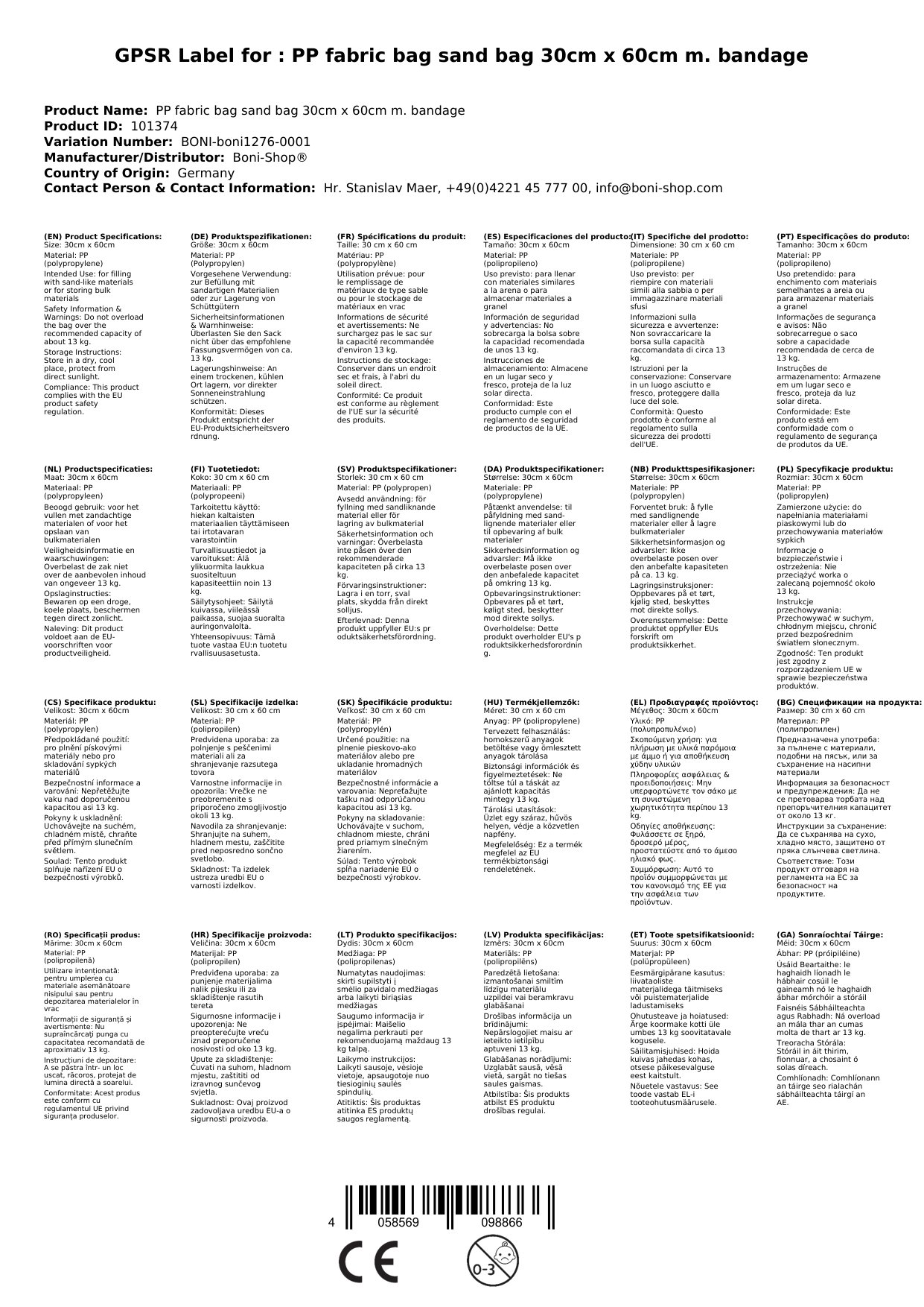 Sandsack, PP Gewebesack 30x60cm, Schwerlastsack mit UV-Schutz
