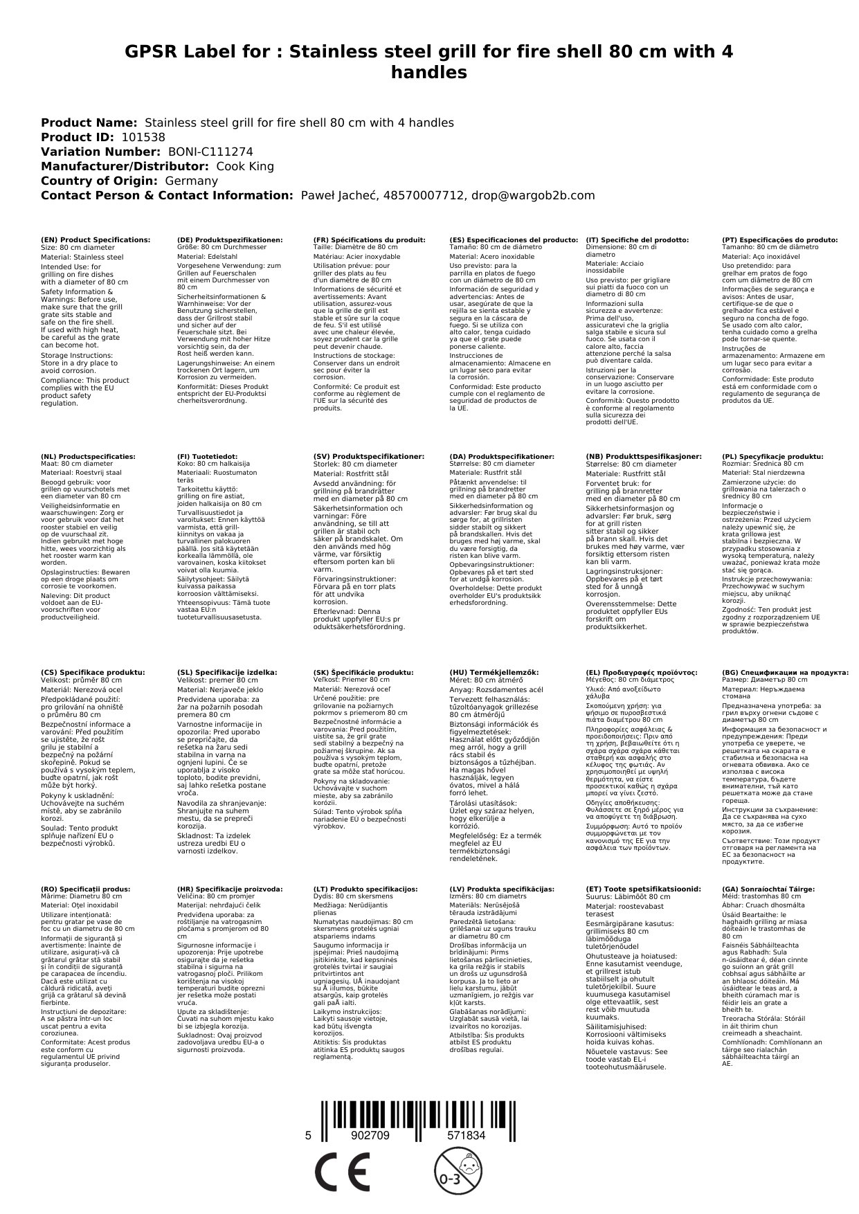 | Brand | Cook King |