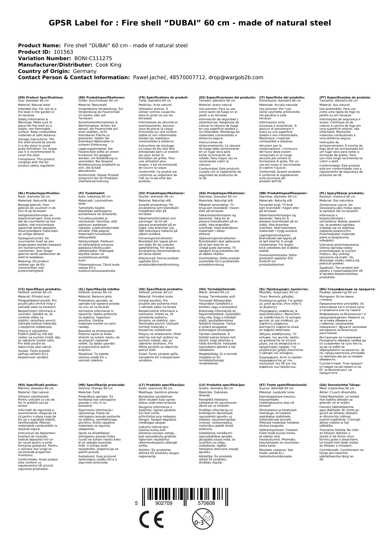 Diese Feuerschale zeichnet sich durch ihre robuste Stahlkonstruktion und sorgfältige Verarbeitung aus. Mit einem Durchmesser von 60 cm bietet sie ausreichend Platz für ein gemütliches Lagerfeuer. Die pulverbeschichtete Oberfläche sorgt für zusätzlichen Schutz vor Witterungseinflüssen. Warum das für dich wichtig ist: Du erhältst eine langlebige und sichere Feuerstelle, die dir viele Jahre Freude bereiten wird.