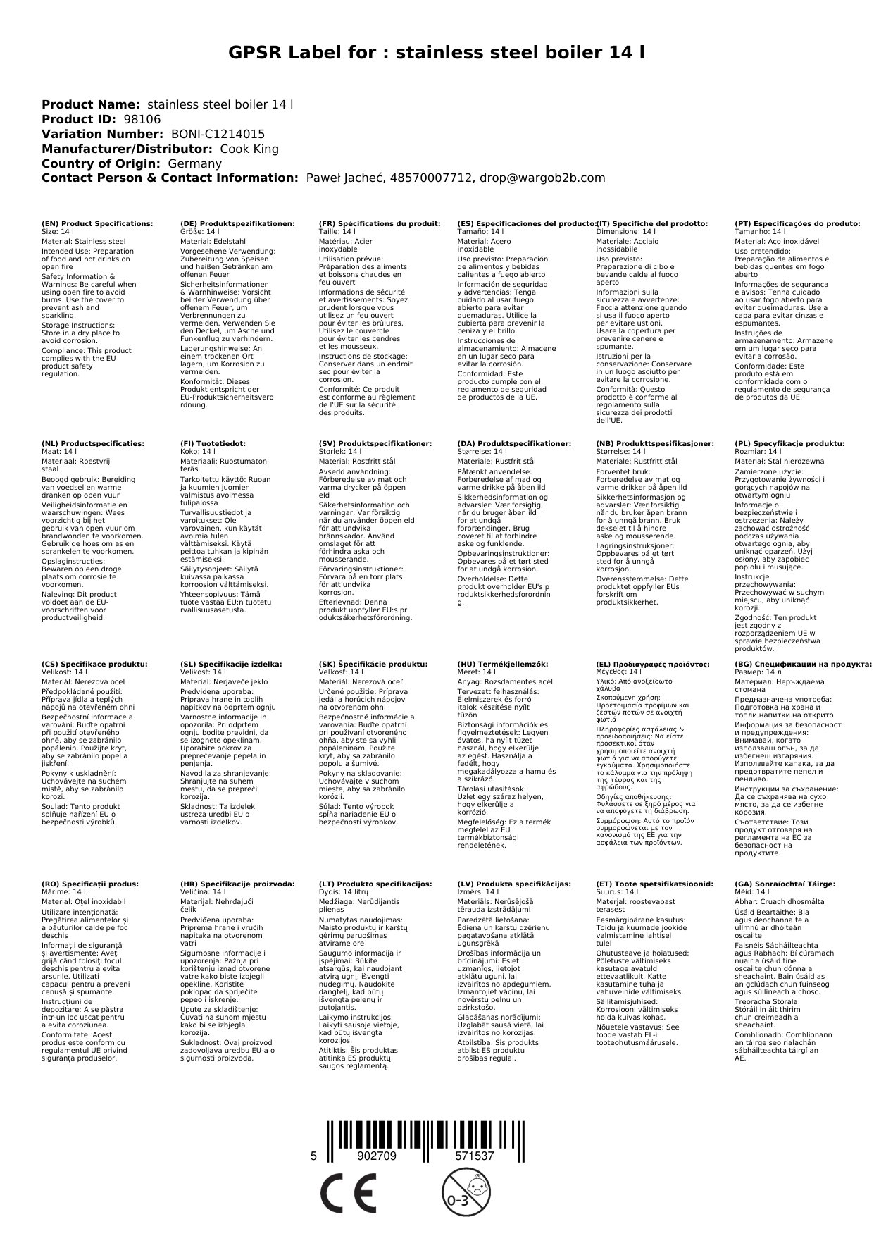 Unser Edelstahlkessel bietet Ihnen zuverlässigen Schutz für Ihre Speisen. Mit einem Fassungsvermögen von 14 Litern und dem praktischen Deckel ist er ideal für die Zubereitung von Mahlzeiten im Freien. Dank der hochwertigen Verarbeitung können Sie sich auf eine lange Lebensdauer verlassen. Warum das für Sie wichtig ist: Sie erhalten einen robusten und langlebigen Kessel, der Ihnen viele Jahre Freude bereiten wird.