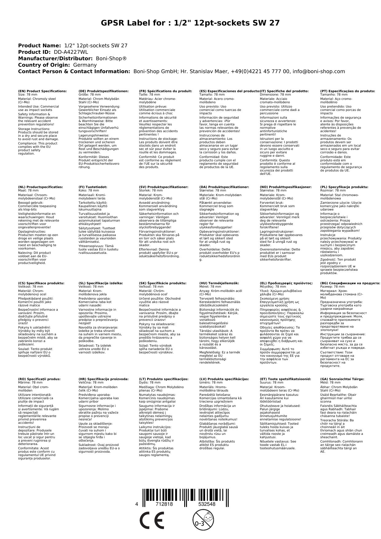 Schlagschrauber Nuss 1/2 Zoll, SW 27, Cr-Mo, Industriequalität
