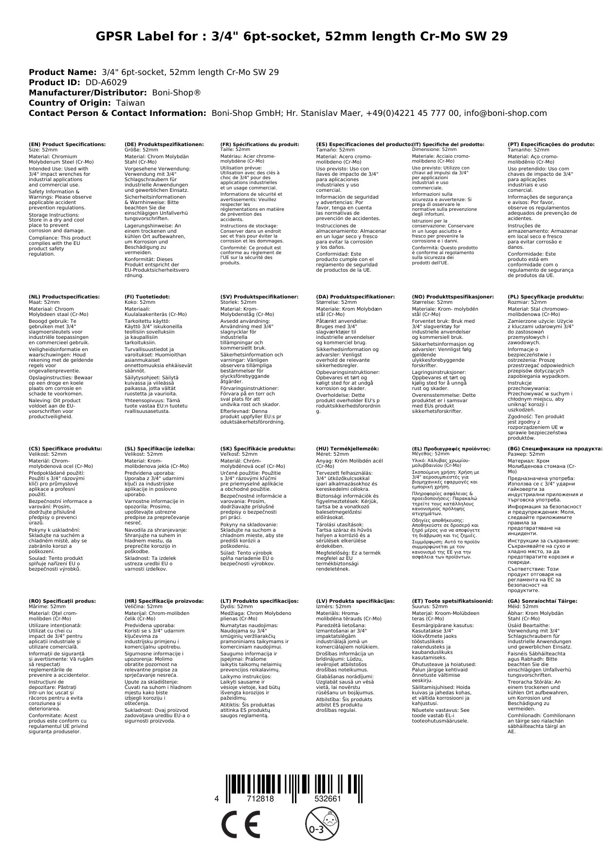 Unsere 3/4 Zoll Schlagschraubernuss bietet Ihnen hohe Leistung und Zuverlässigkeit. Gefertigt aus Chrom-Molybdän-Stahl (Cr-Mo) ist sie besonders robust und langlebig. Die Schlüsselweite von SW 29 und die Länge von 52mm machen sie zum idealen Werkzeug für anspruchsvolle Anwendungen. Sie können sich auf eine präzise Passform und lange Lebensdauer verlassen.
