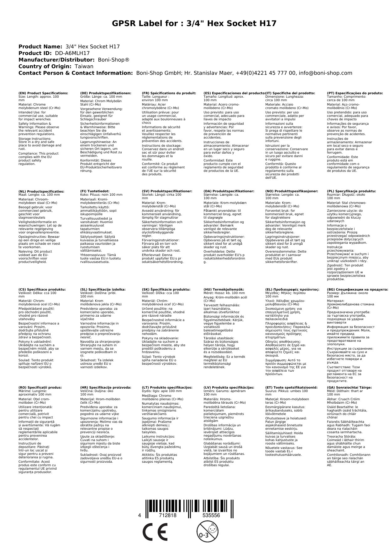 3 4 zoll Innensechskant Nuss, H17, Schlagschrauber Nuss, Cr-Mo