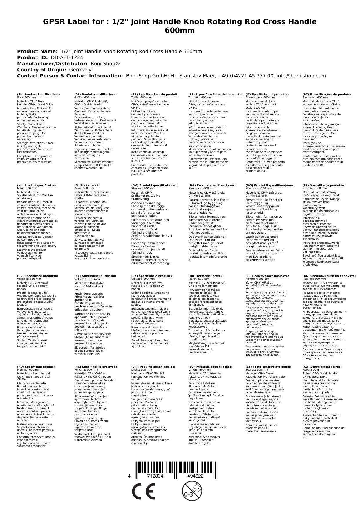 Gelenkgriff 1/2 Zoll, Knebelgriff, Drehstange, Quergriff 600mm