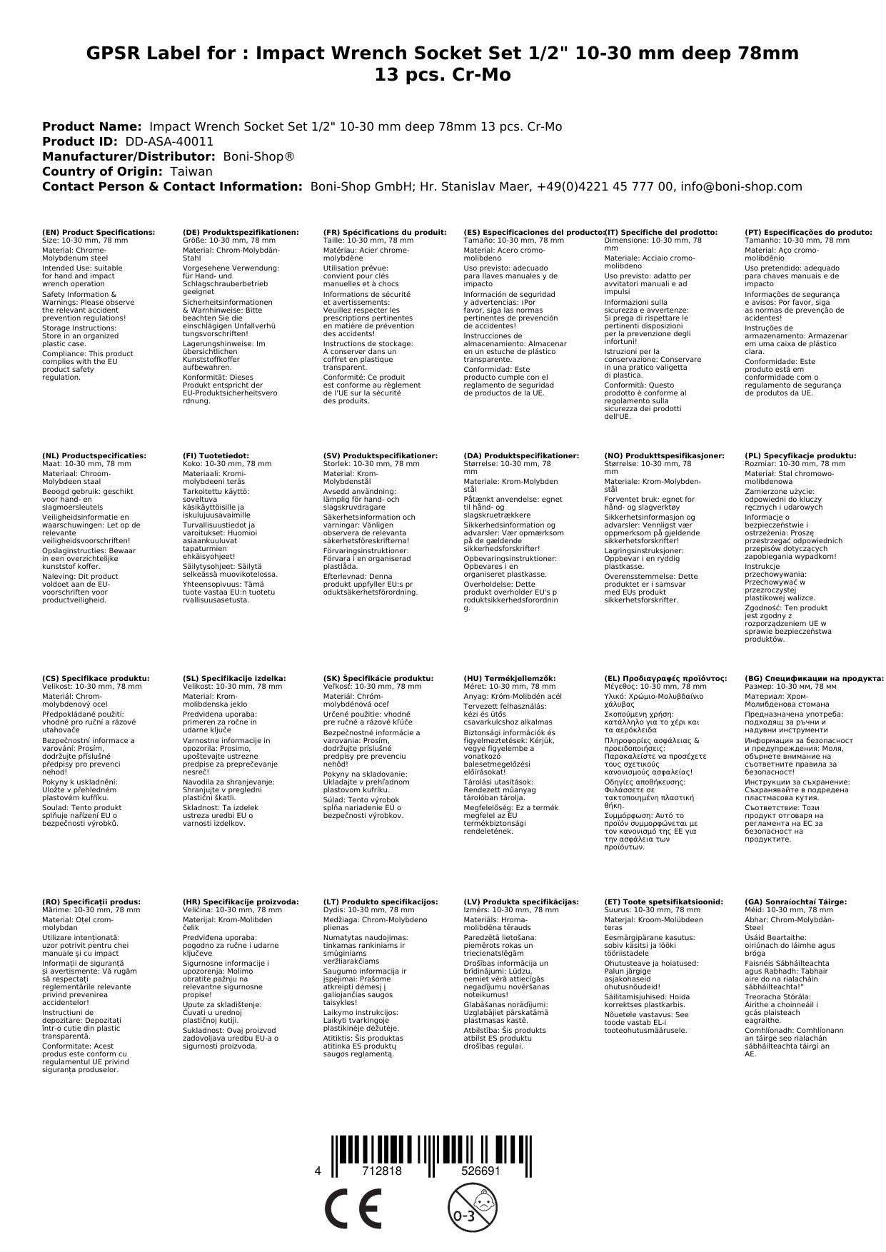 Das Schlagschrauber Nuss Set ist aus Chrom-Molybdän-Stahl gefertigt und bietet höchste Stabilität und Langlebigkeit. Die Tiefbettnüsse ermöglichen das Arbeiten an schwer zugänglichen Stellen. Mit den Größen von 10 bis 30 mm decken Sie die gängigsten Anwendungen ab. Warum das für Sie wichtig ist: Sie erhalten ein Werkzeugset, das auch unter hoher Belastung zuverlässig funktioniert.
