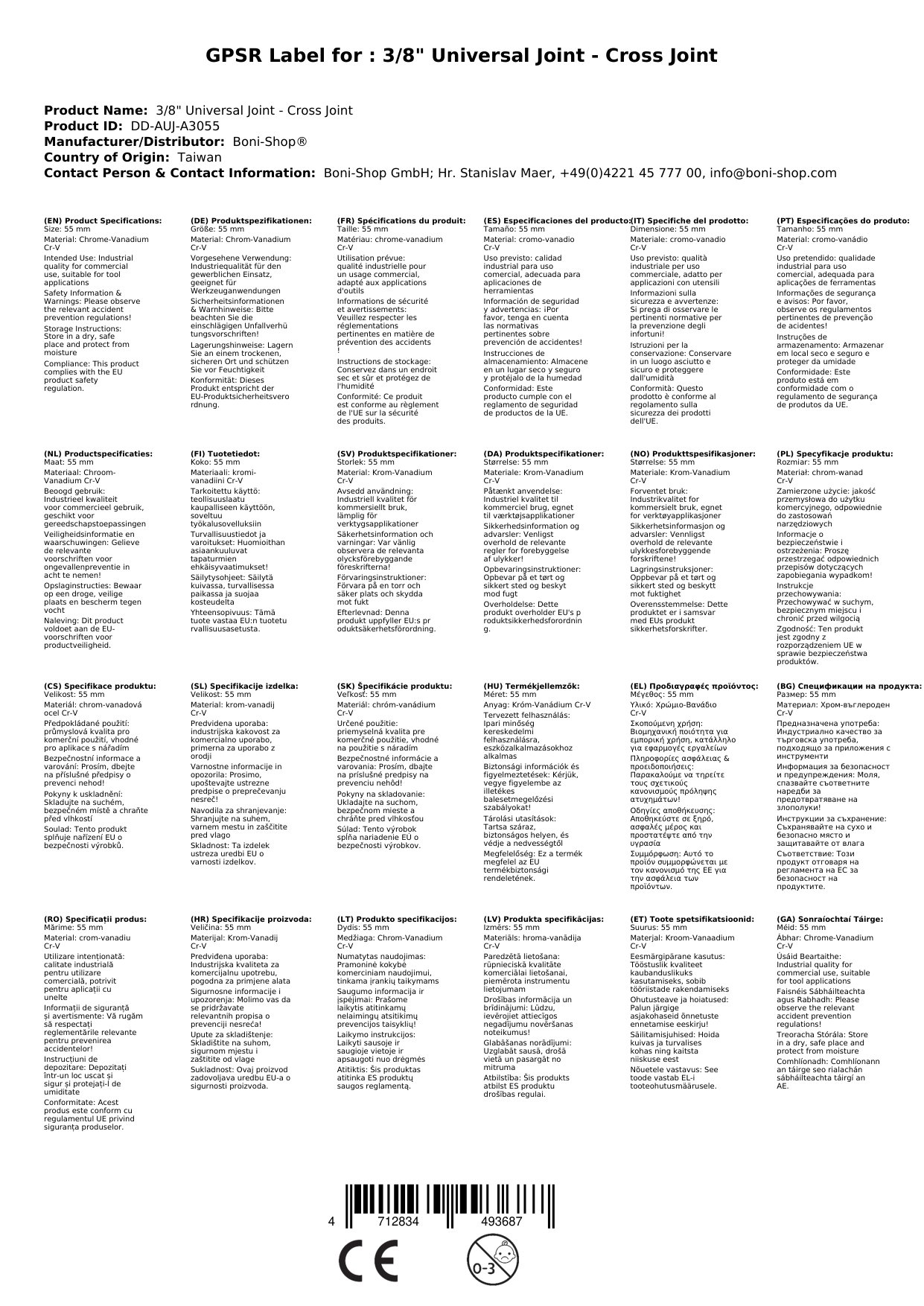 - Chrom-Vanadium Stahl: Der robuste Stahl sorgt für eine lange Lebensdauer und hohe Belastbarkeit.