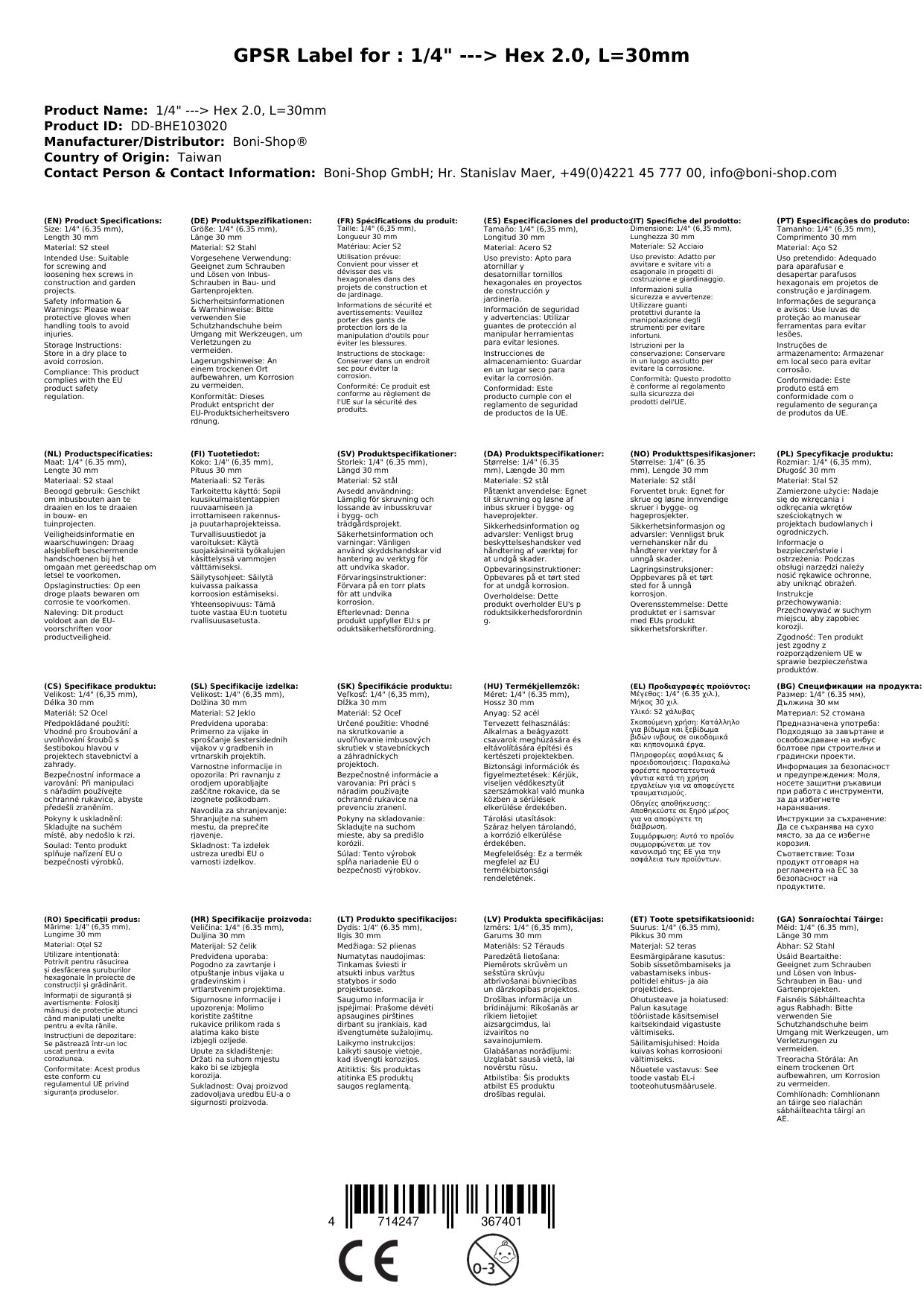 Innensechskant 2mm, Innensechskant, 1/4 Zoll, L=30mm