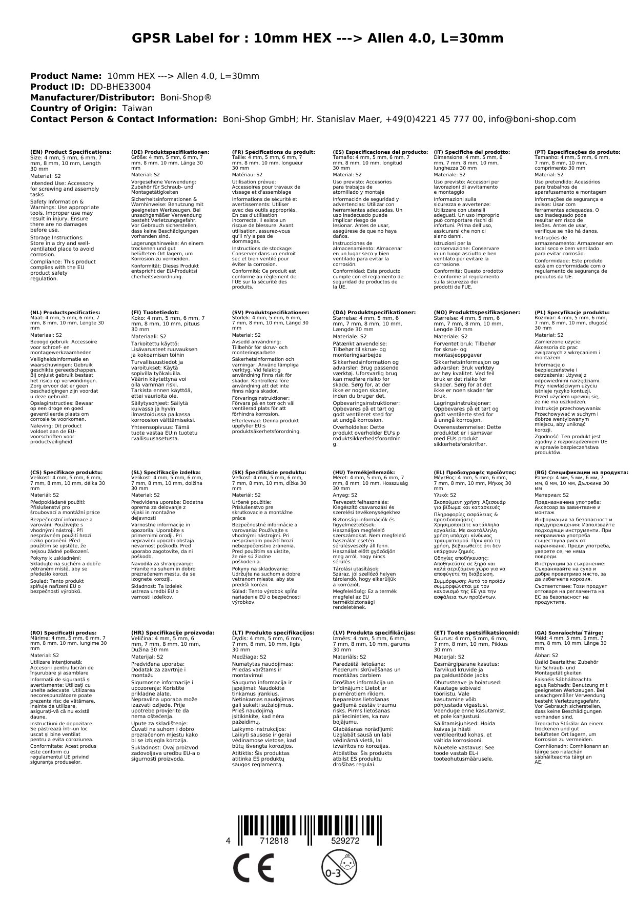 Innensechskant 4mm, Innensechskant, kurzer Innensechskant, S2 Stahl, 30mm