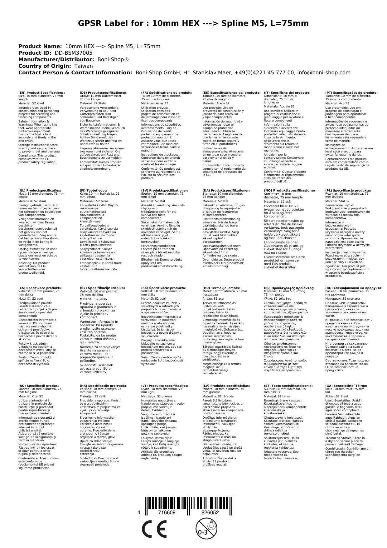 Stellen Sie eine Frage, um mehr über das Produkt zu erfahrenSpline Bit, M5, 10mm Hex, 75mm, S2 Stahl