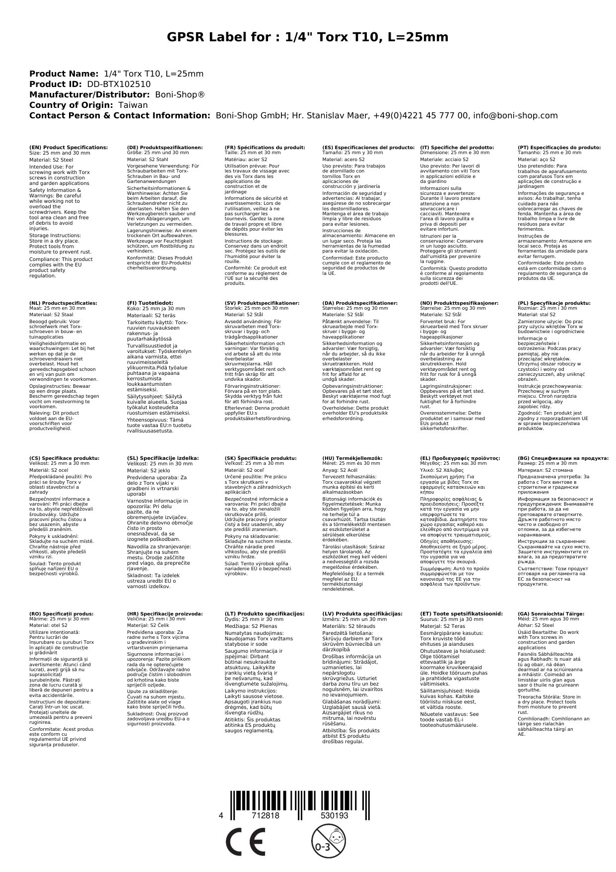 Innensechskant Bit T10, 25mm, 1/4 Zoll, S2 Stahl, Schrauberbit