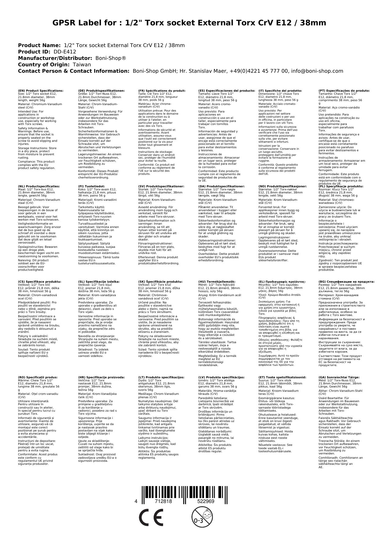 Die Torx Nuss ist aus hochwertigem Chrom-Vanadium-Stahl (CrV) gefertigt, was eine lange Lebensdauer und hohe Belastbarkeit gewährleistet. Die präzise gefertigte E12 Größe und die 1/2 Zoll Aufnahme ermöglichen einen vielseitigen Einsatz mit gängigen Werkzeugen. Mit der idealen Größe bietet sie einen optimalen Kontakt mit Schrauben und minimiert das Risiko von Beschädigungen. So können Sie sich darauf verlassen, dass diese Nuss auch unter anspruchsvollen Bedingungen präzise und zuverlässig arbeitet und teure Reparaturen vermeidet.