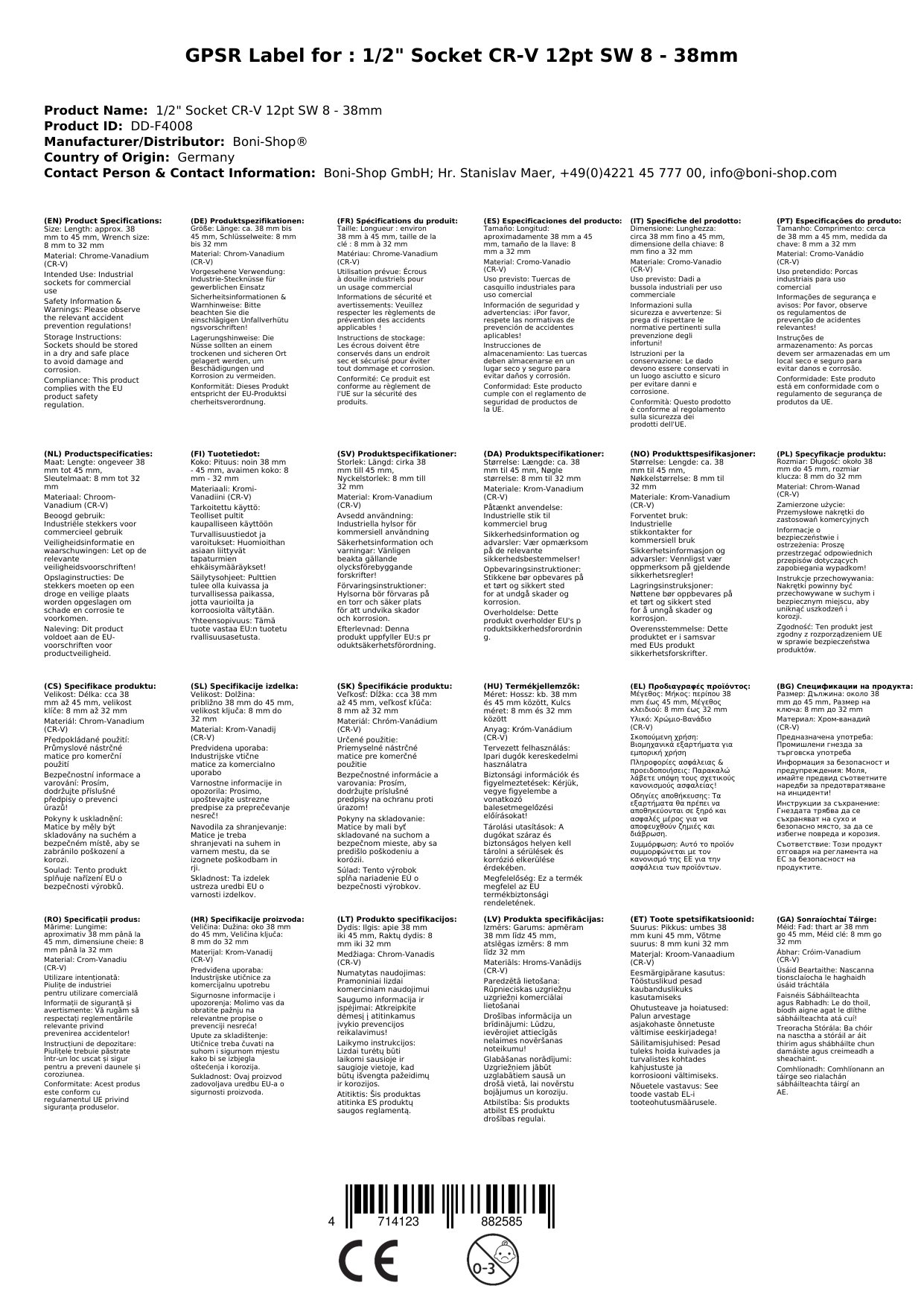 Unsere Industrie Stecknuss bietet höchste Präzision und Zuverlässigkeit für professionelle Anwendungen. Mit einer Aufnahme von 1/2 Zoll und einer Schlüsselweite von 8 mm bis 32 mm deckt sie ein breites Spektrum an Anforderungen ab. Gefertigt aus robustem Chrom-Vanadium Stahl (CR-V), garantiert sie lange Lebensdauer und Widerstandsfähigkeit gegen hohe Belastungen. Das bedeutet für Sie: Eine vielseitige und langlebige Stecknuss, die Ihre Arbeit effizienter macht.