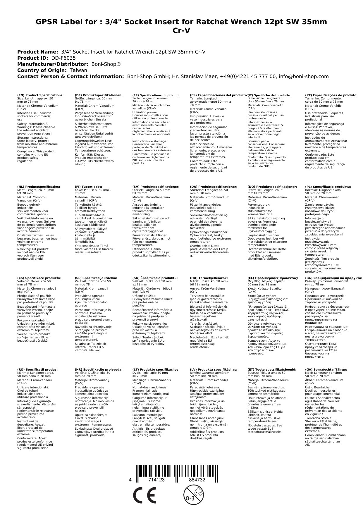 Stecknuss 3/4 Zoll, 35mm, 12 Kant, Cr-V Werkzeug Stecknuss