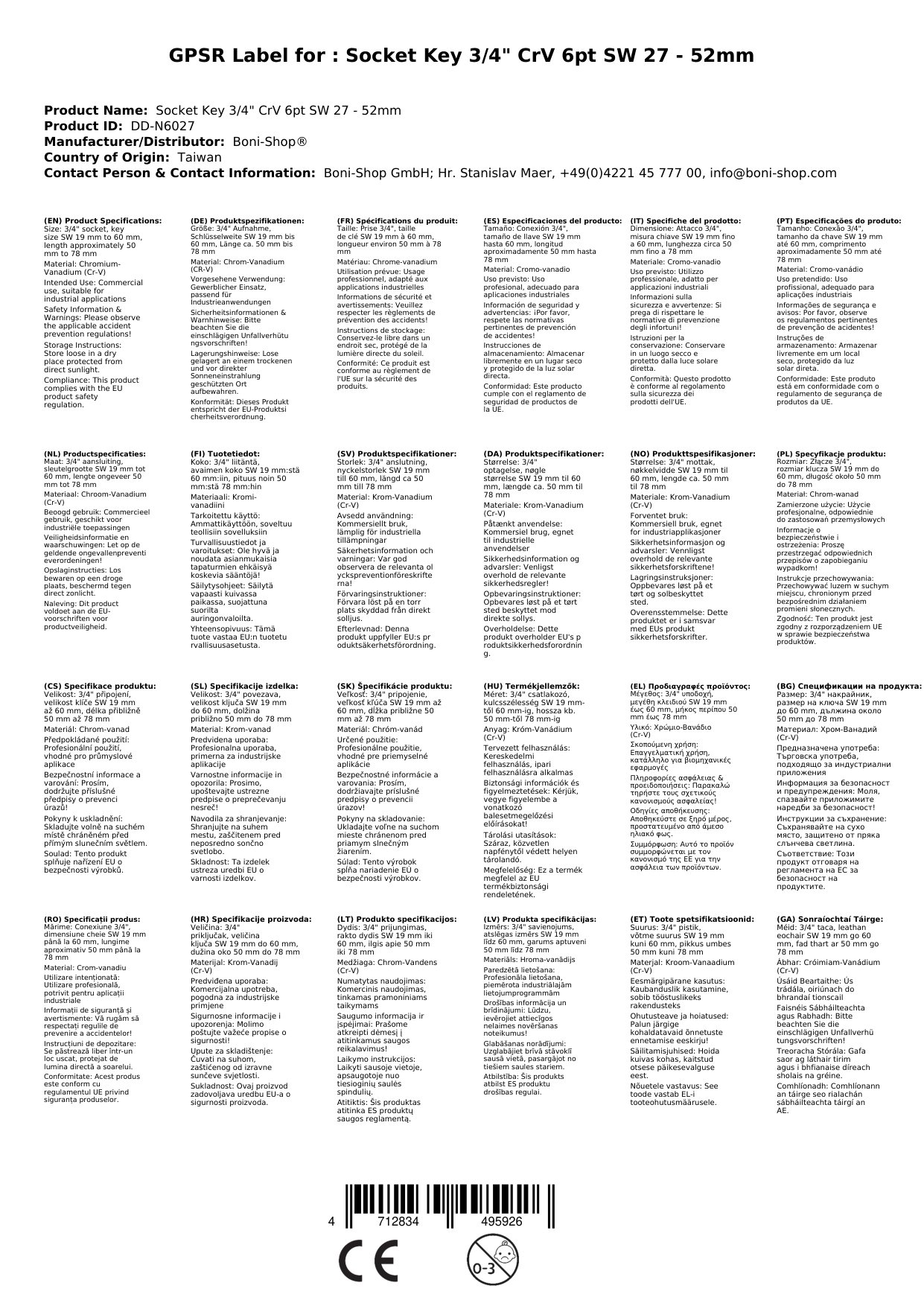 Diese Industriestecknuss bietet Ihnen höchste Qualität für den gewerblichen Einsatz. Sie besteht aus robustem Chrom-Vanadium (CrV) und ist wahlweise mit einer Schlüsselweite von 27 mm (6-kant mit Flankenschutz) erhältlich. Mit einer Länge von ca. 52 mm und einem Gewicht von ca. 0.222 kg/Stück ist sie ideal für anspruchsvolle Anwendungen. Warum das für Sie wichtig ist: Sie erhalten ein langlebiges Werkzeug, das auch unter hoher Belastung zuverlässig funktioniert.