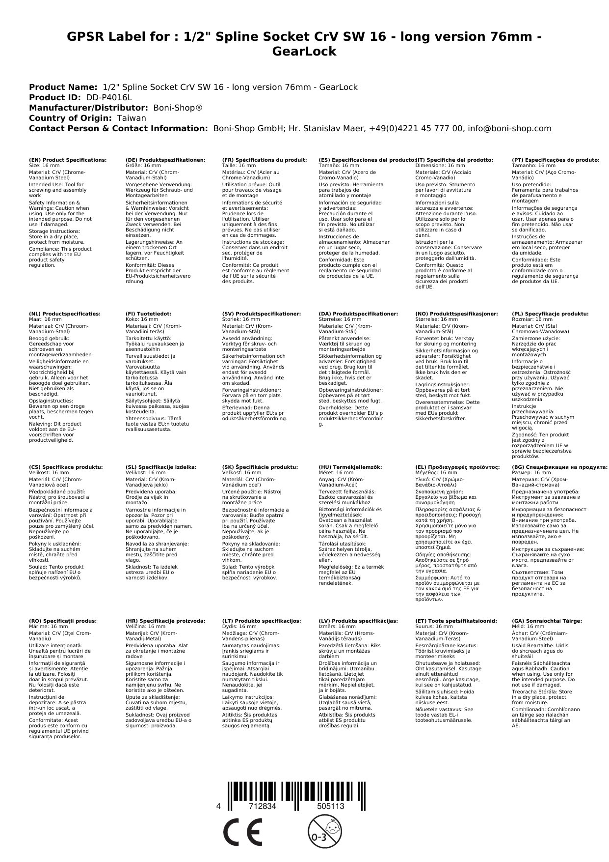 Die 1/2 Zoll Spline-Nuss ist ein unverzichtbares Werkzeug für Profis und Heimwerker. Hergestellt aus hochwertigem CrV-Stahl, garantiert sie eine lange Lebensdauer und hohe Belastbarkeit. Die GearLock-Technologie sorgt für einen sicheren Halt und optimale Kraftübertragung, was besonders bei festsitzenden Schrauben von Vorteil ist. Die lange Ausführung (76mm) ermöglicht das Erreichen tieferliegender Schrauben.