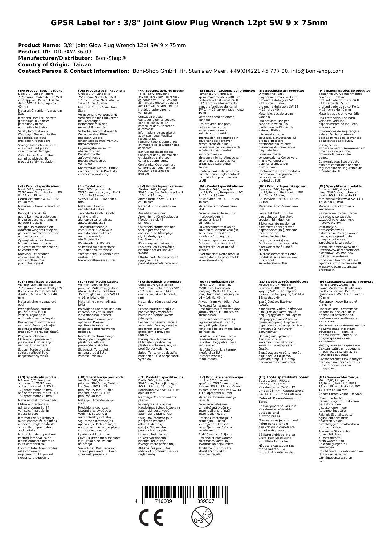 | Schlüsselweite | 8, 9, 10, 12, 14, 16 mm |