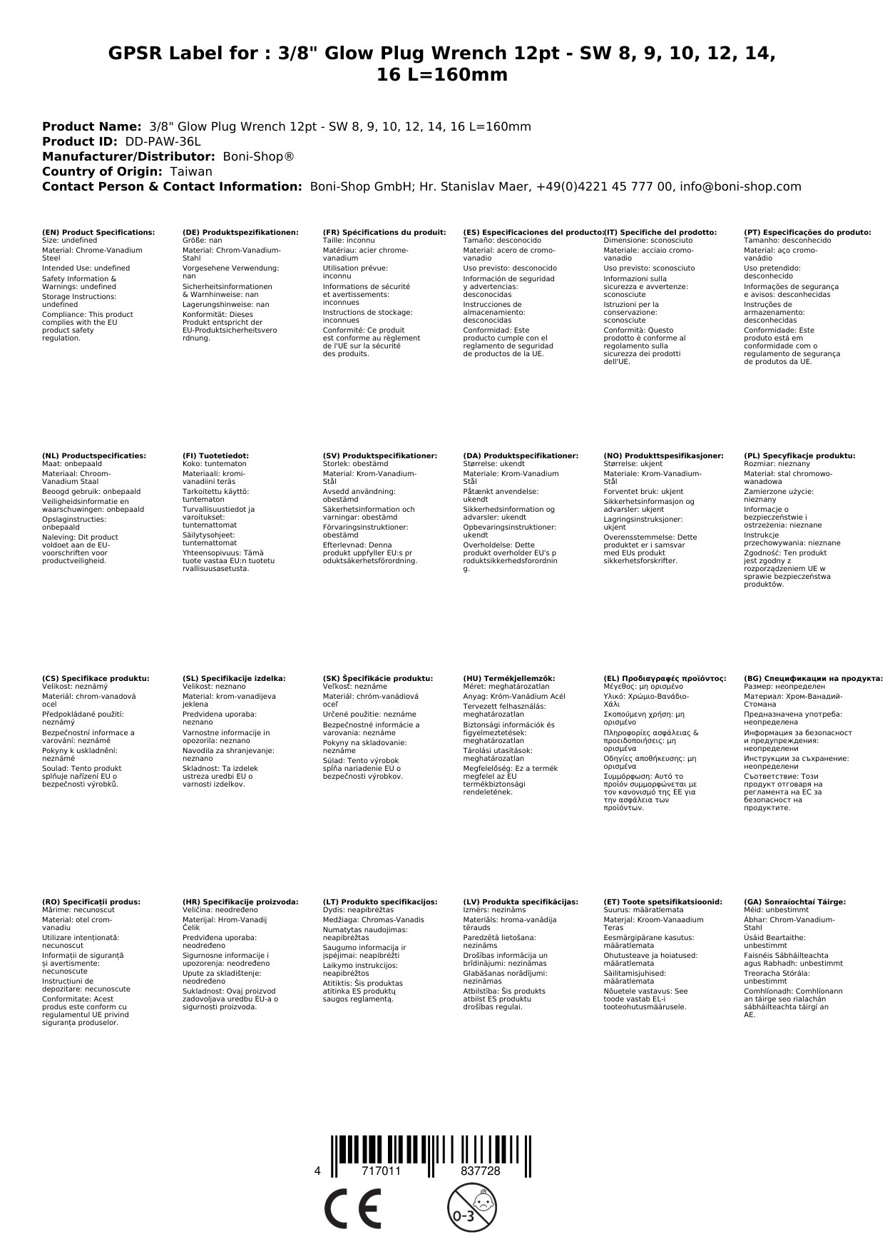 | Schlüsselweiten | 8, 9, 10, 12, 14, 16 mm |