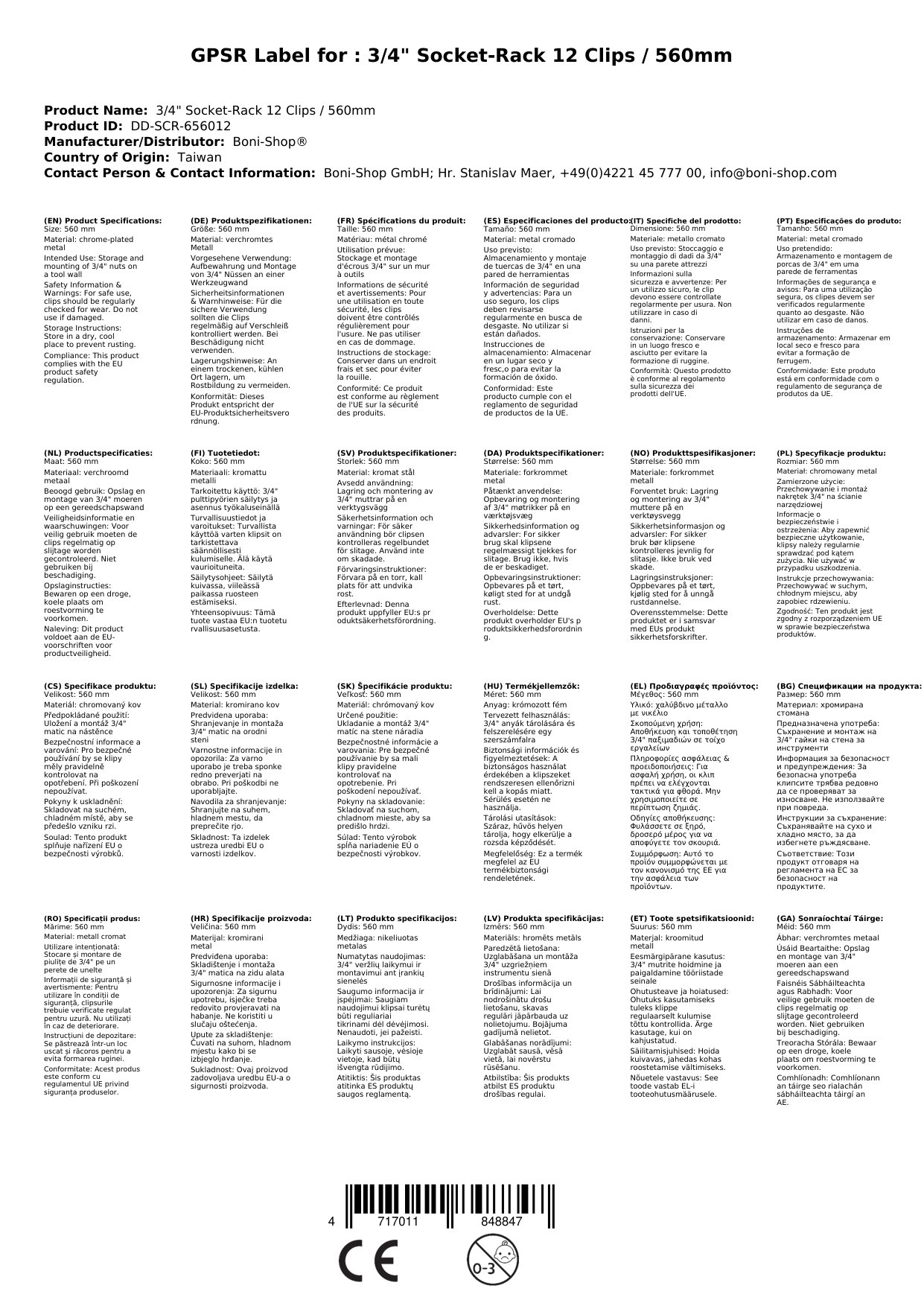 Unsere Stecknuss Schiene bietet eine ideale Lösung zur Aufbewahrung Ihrer 3/4 Zoll Stecknüsse. Mit 12 robusten Clips und einer Länge von 560mm sorgt sie für Ordnung und schnellen Zugriff in Ihrer Werkstatt. Das verchromte Material garantiert Langlebigkeit und Schutz vor Korrosion. Warum das für Sie wichtig ist: Sie haben Ihre Werkzeuge stets übersichtlich und einsatzbereit.