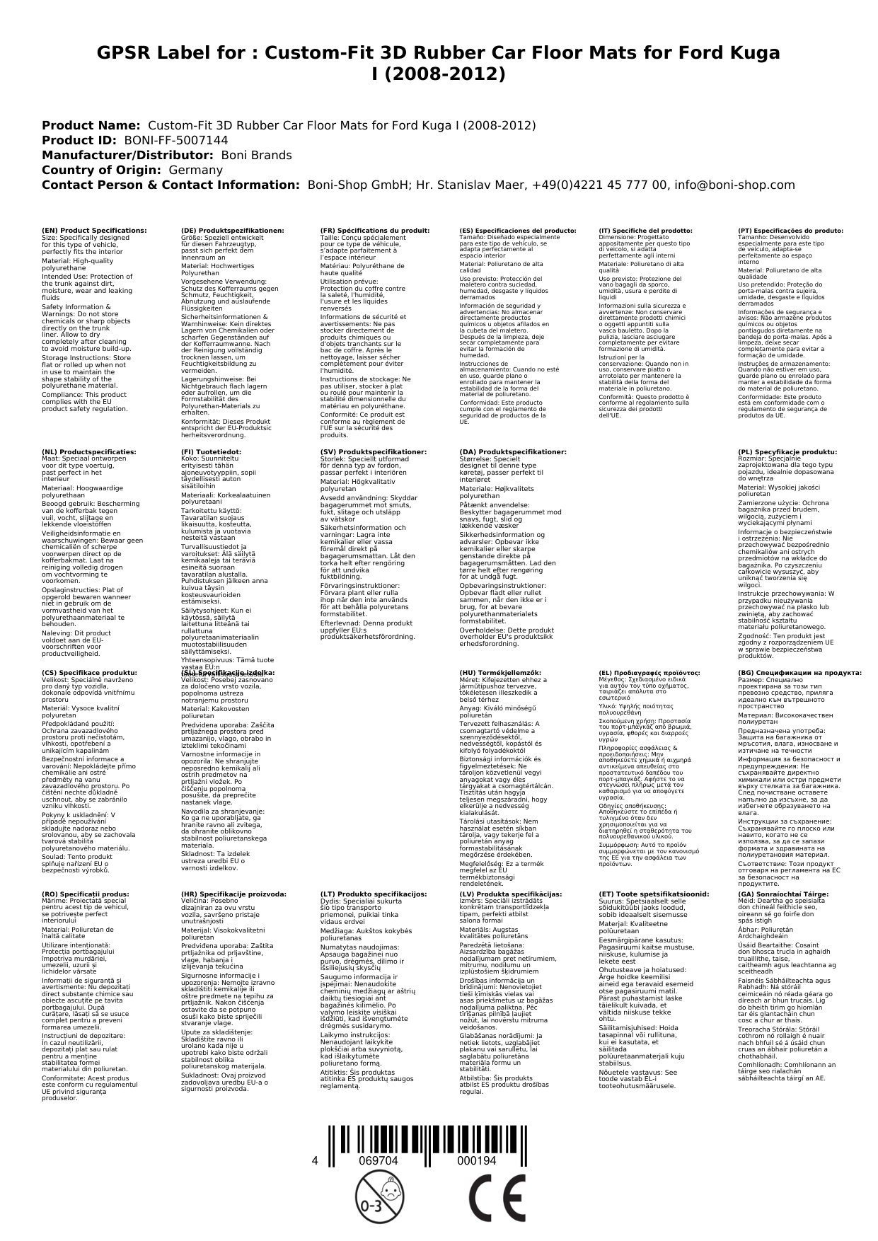 Diese speziellen 3D Gummifußmatten sind exklusiv für den FORD Kuga I der Baujahre 2008-2012 entwickelt worden. Für andere Kuga-Generationen oder Modelle empfehlen wir, die spezifischen Produktseiten in unserem Shop zu prüfen, um die exakt passenden Fußmatten zu finden.