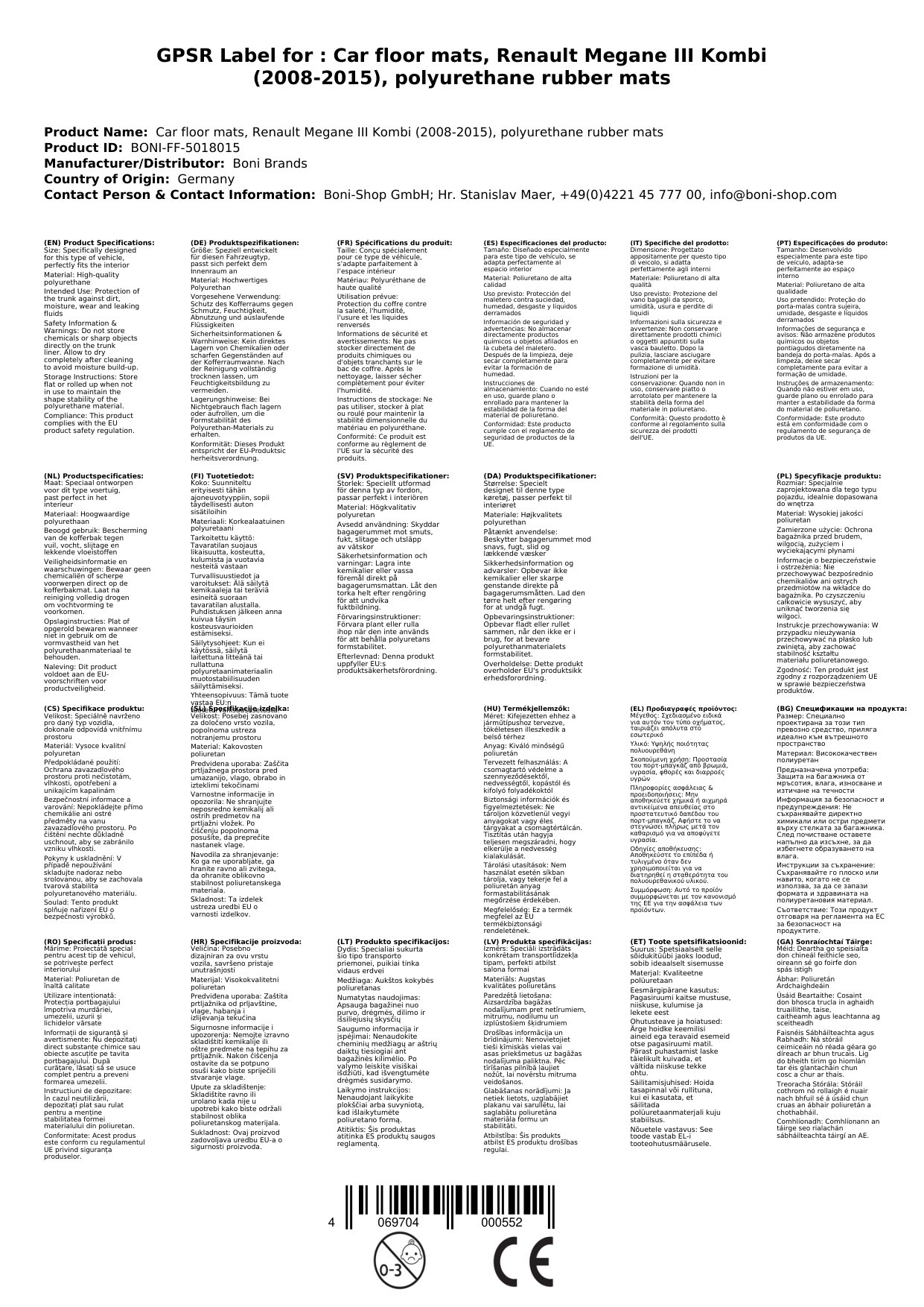 Stellen Sie eine Frage, um mehr über das Produkt zu erfahrenGummimatten Auto für Renault Megane III (2008-2015) Kombi, 3D passgenau, Polyurethan, hoher Rand