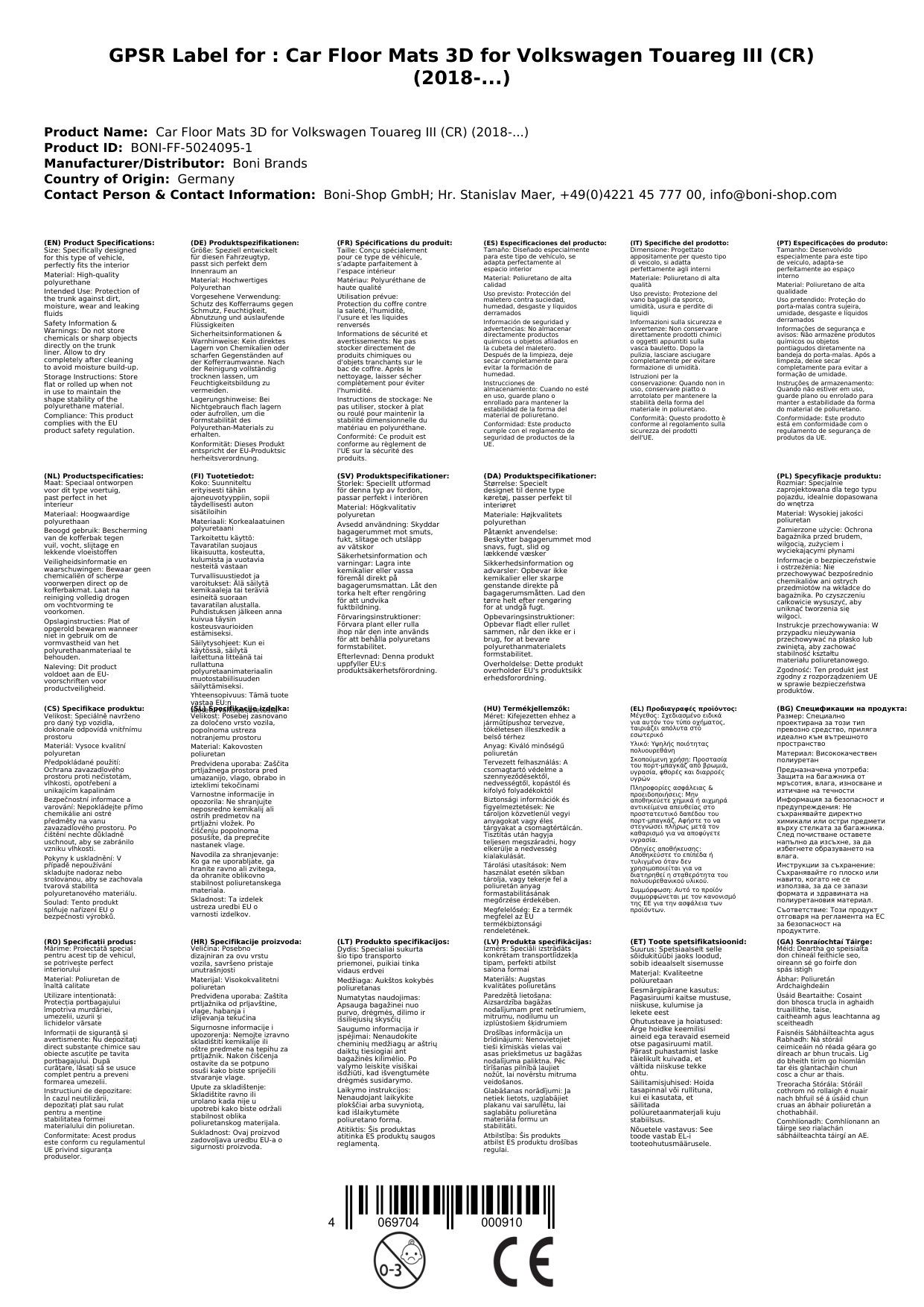 - Hohe Ränder: Die bis zu 35 mm hohen Ränder schützen Ihren Fahrzeuginnenraum optimal vor Flüssigkeiten und Schmutz. Egal ob Regen, Schnee oder verschüttete Getränke – der Schmutzschutz ist maximal.