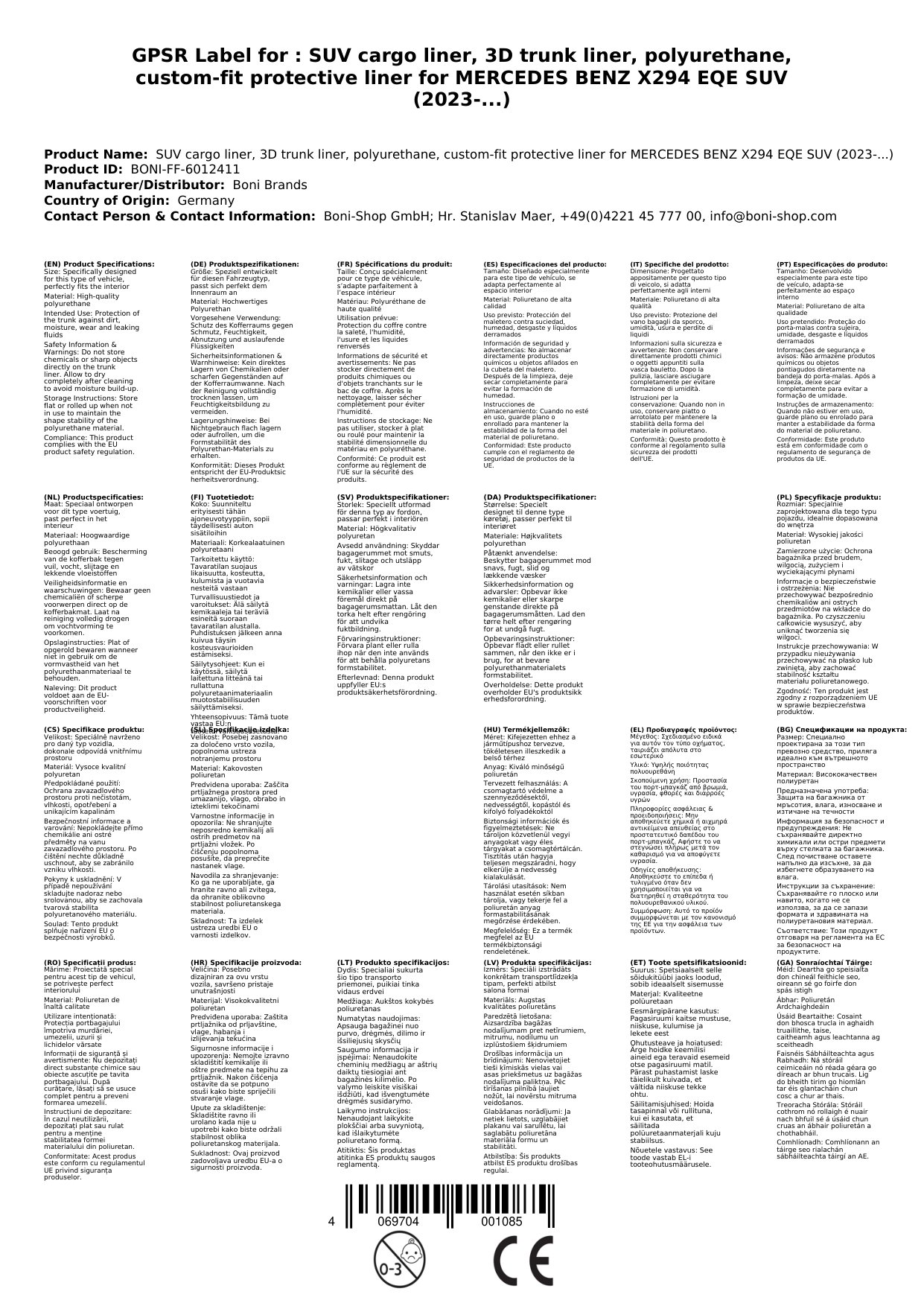 Stellen Sie eine Frage, um mehr über das Produkt zu erfahren3D Kofferraumwanne, passgenaue Schutzwanne für MERCEDES BENZ X294 EQE SUV (2023-...), Polyurethan