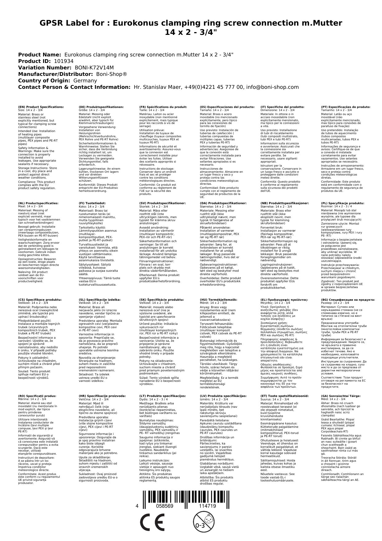 Suchen Sie nach einer zuverlässigen und einfachen Lösung für die Installation Ihrer Heizungsrohre? Unsere Eurokonus Klemmringverschraubung bietet Ihnen eine sichere und werkzeuglose Verbindung für Mehrschichtverbundrohre, PEX Rohre und PE-RT Rohre. Damit sparen Sie Zeit und Mühe bei der Installation und können sich auf eine dichte und dauerhafte Verbindung verlassen.