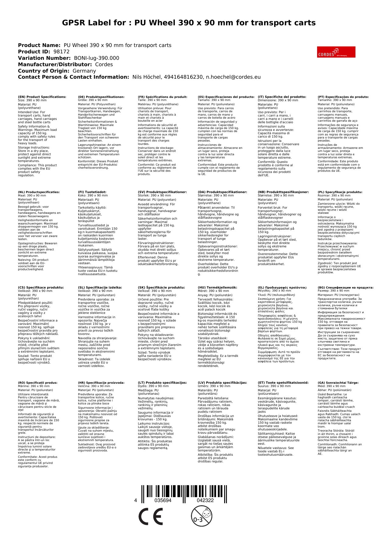 - Abmessungen: 390 x 90 mm (Rad Ø x Radbreite) – Passt ideal für gängige Transportkarren und sorgt für eine optimale Lastverteilung.