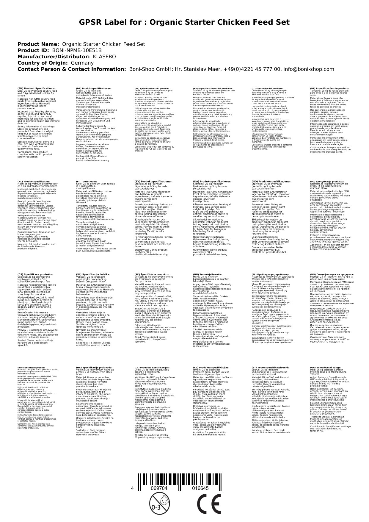 | Zusammensetzung | 25kg Bio-Geflügelfutter + 5kg getrocknete Schwarzkopfmaden |