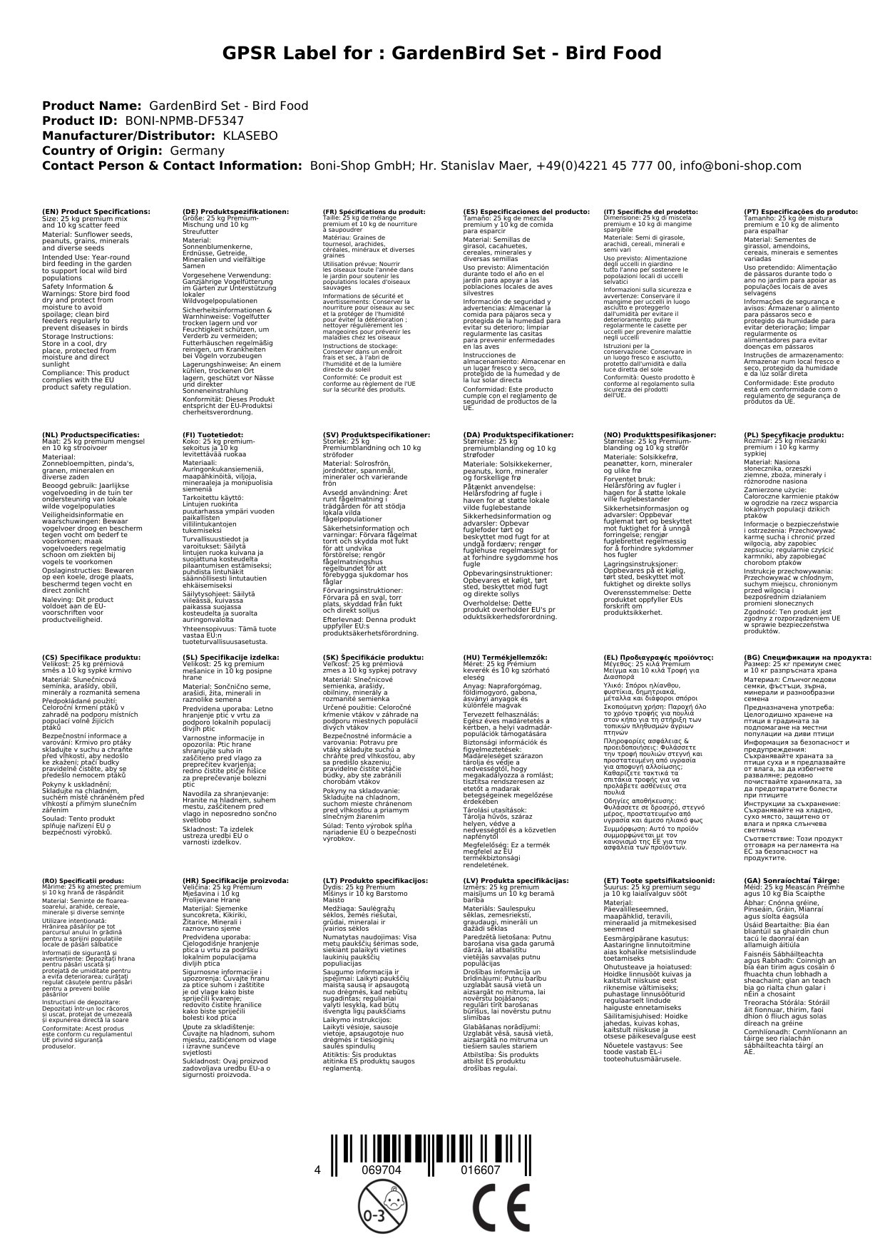 Das Set umfasst 25kg Premium-Vogelfutter aus Sonnenblumenkernen, Erdnüssen, Getreide und Mineralien sowie 10kg vielseitiges Streufutter; ambrosia-kontrolliert und optimiert für Winter, Brutzeit und Übergangsphasen.