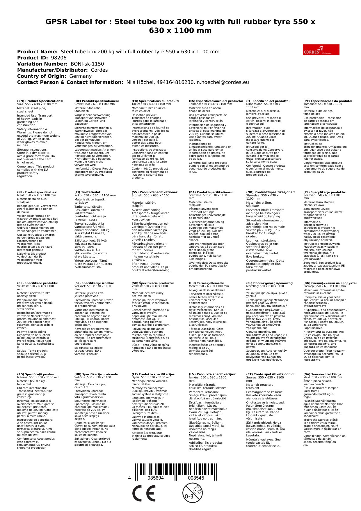 Stellen Sie eine Frage, um mehr über das Produkt zu erfahrenStahlrohrkarre 200 kg Vollgummibereifung (VG)