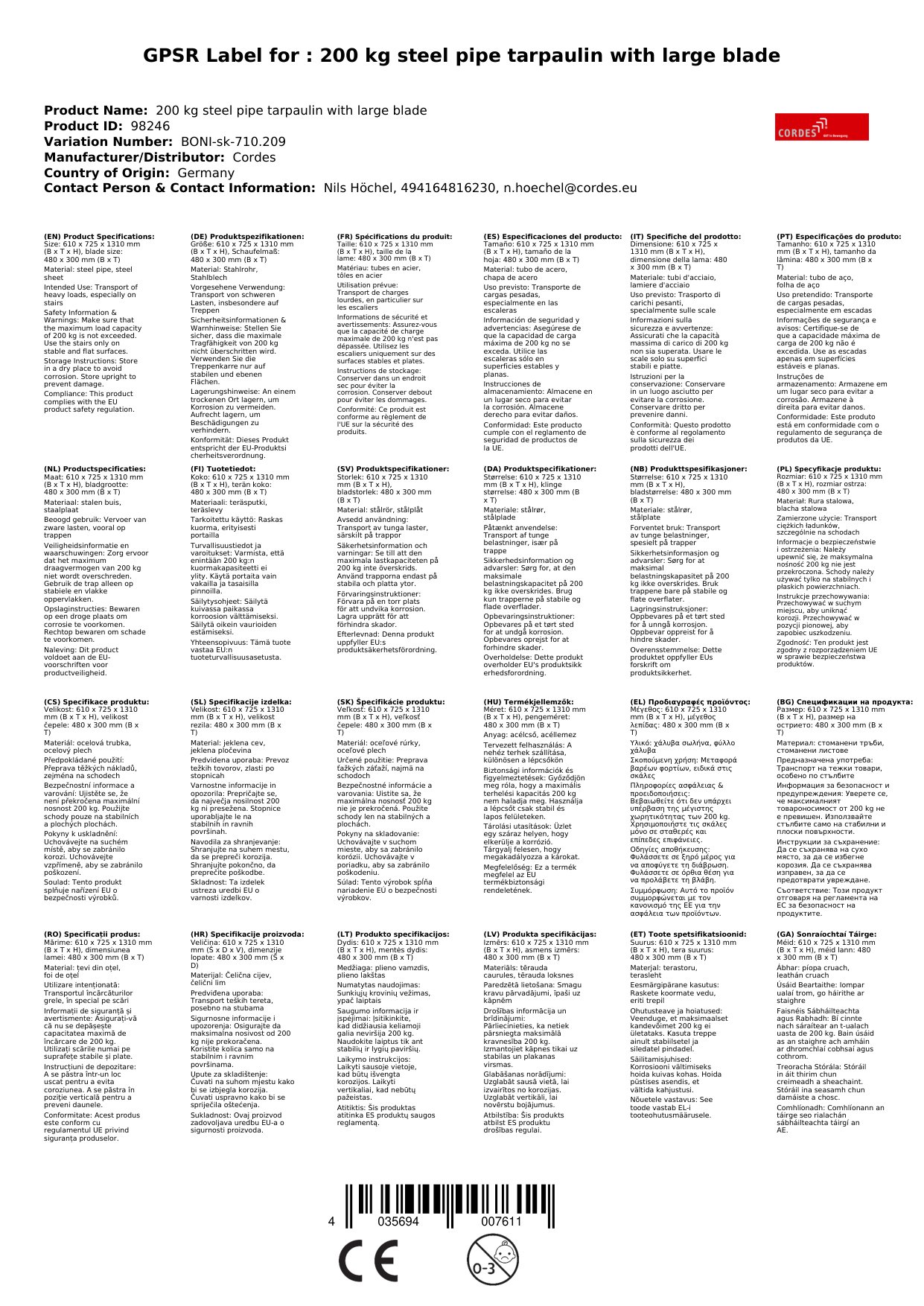 - Hohe Traglast von 200 kg: Ideal für den Transport von schweren Lasten im gewerblichen und privaten Bereich.