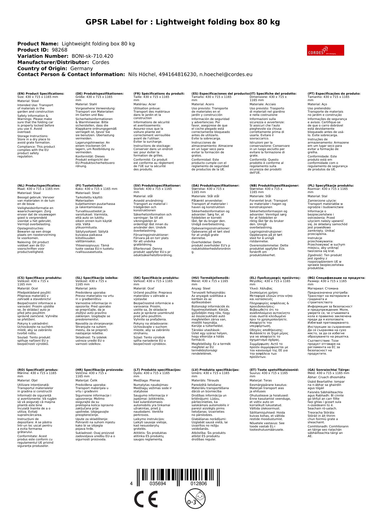 - Robuste Konstruktion: Die Schweißkonstruktion aus Stahl sorgt für Stabilität und Langlebigkeit, sodass Sie lange Freude an Ihrer Klappkarre haben.