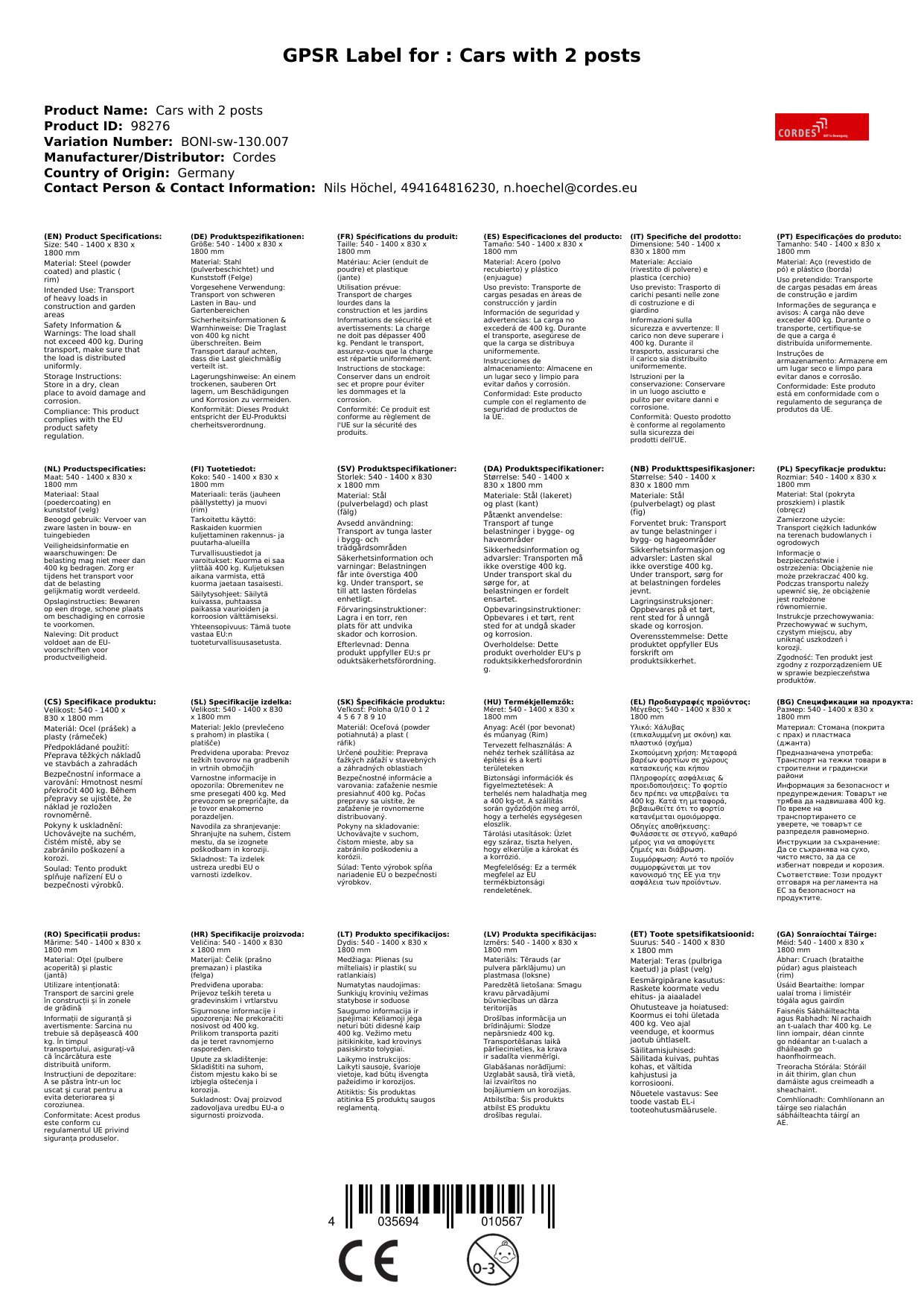 Der Wagen ist gut verarbeitet und die Tragarme lassen sich einfach verstellen. Sehr zu empfehlen!