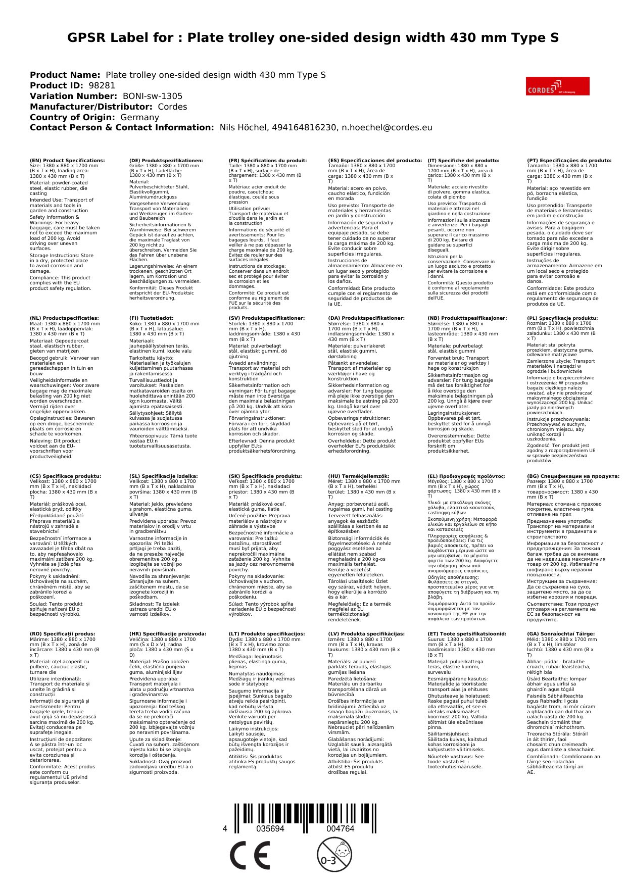 - Sichere Handhabung: Die Neigung der Ladefläche und die Gummibereifung sorgen für einen sicheren Transport.