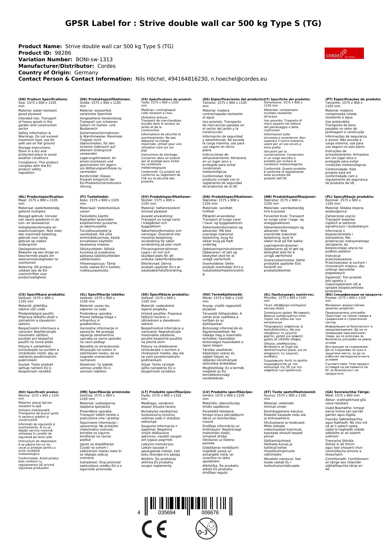 - Stabile Ladefläche durch den wasserfest verleimten Sperrholzboden.