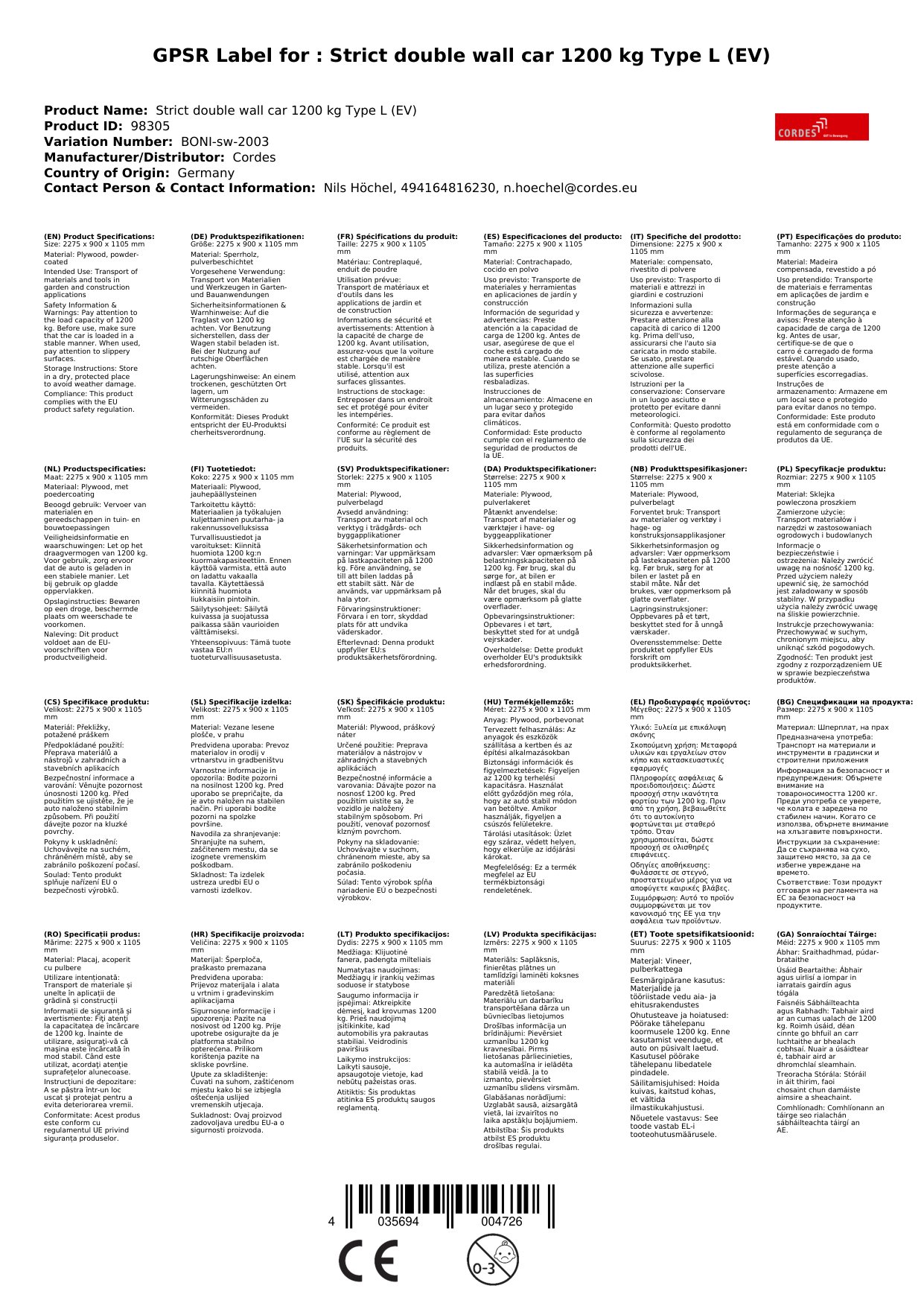 - Hohe Traglast: Mit einer Traglast von 1200 kg können Sie schwere Lasten sicher und effizient transportieren.
