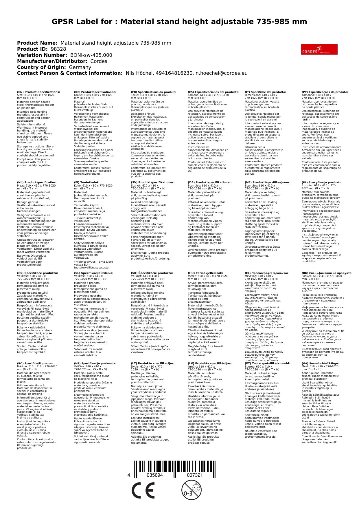 - Flexibilität: Dank der Höhenverstellbarkeit ist der Materialständer vielseitig einsetzbar.