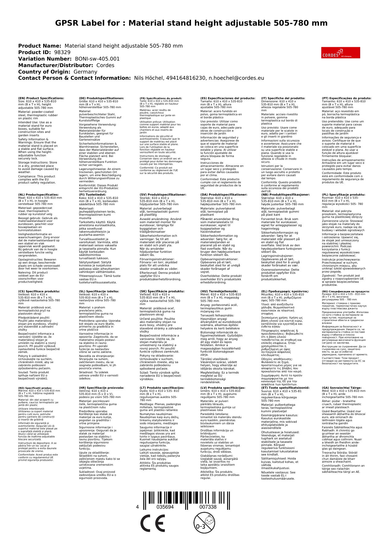 - Flexibilität: Dank der Höhenverstellbarkeit ist der Materialständer vielseitig einsetzbar.