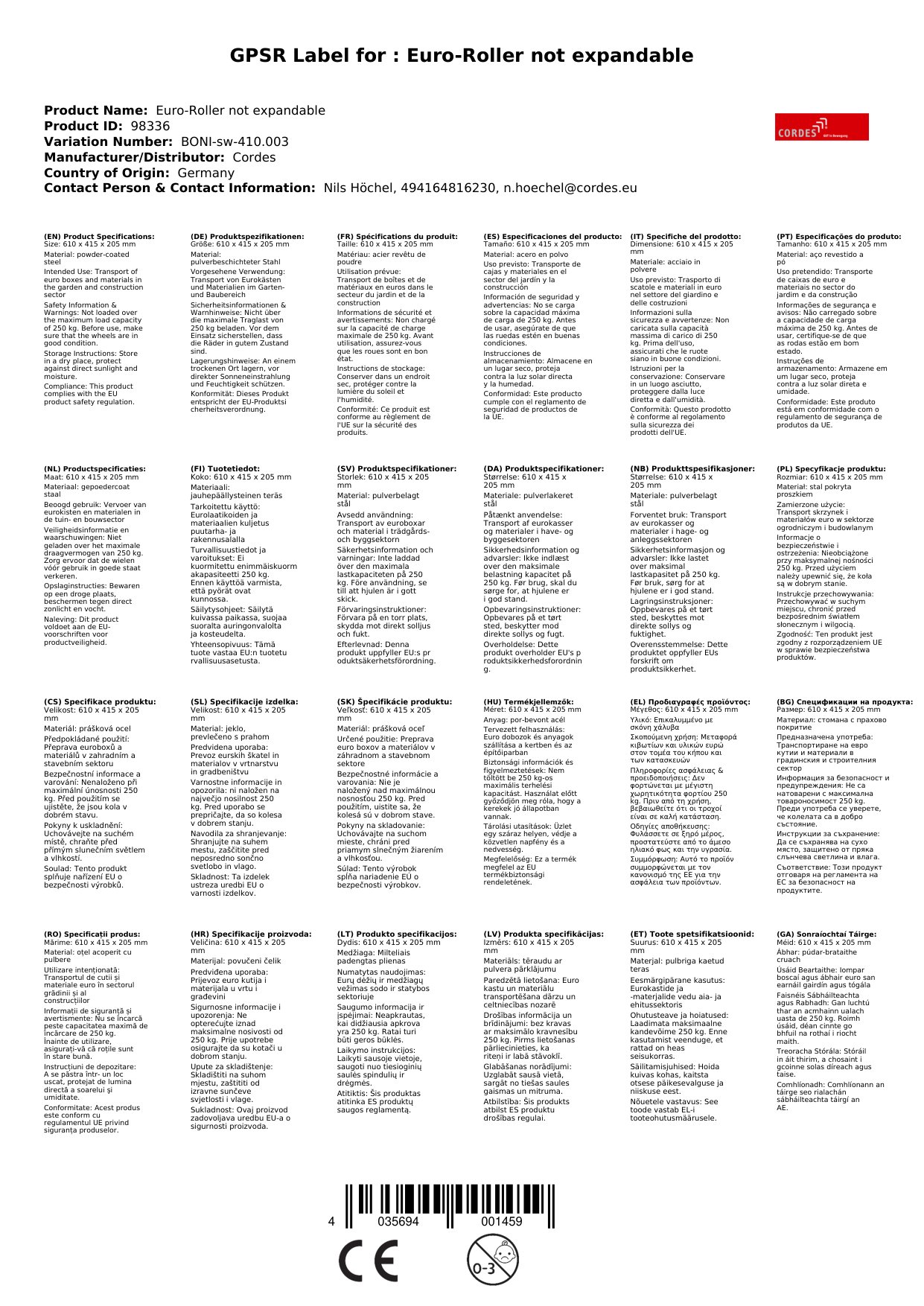 - Optimale Anpassung: Passend für alle gängigen Eurokästen, wodurch ein sicherer und effizienter Transport gewährleistet wird.