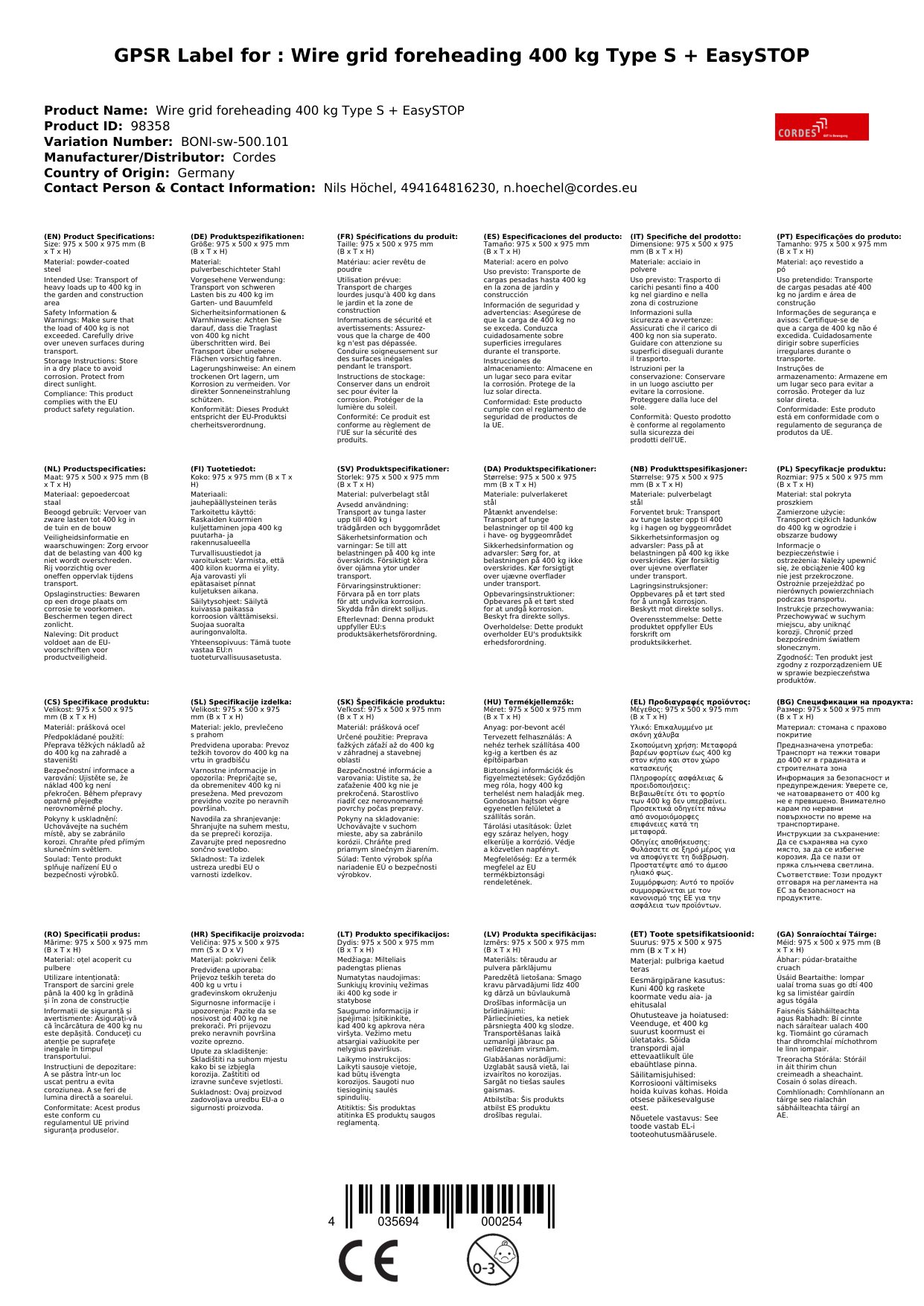 Drahtgitterwagen, Stirnwandwagen 400 kg, EasySTOP, Transportwagen