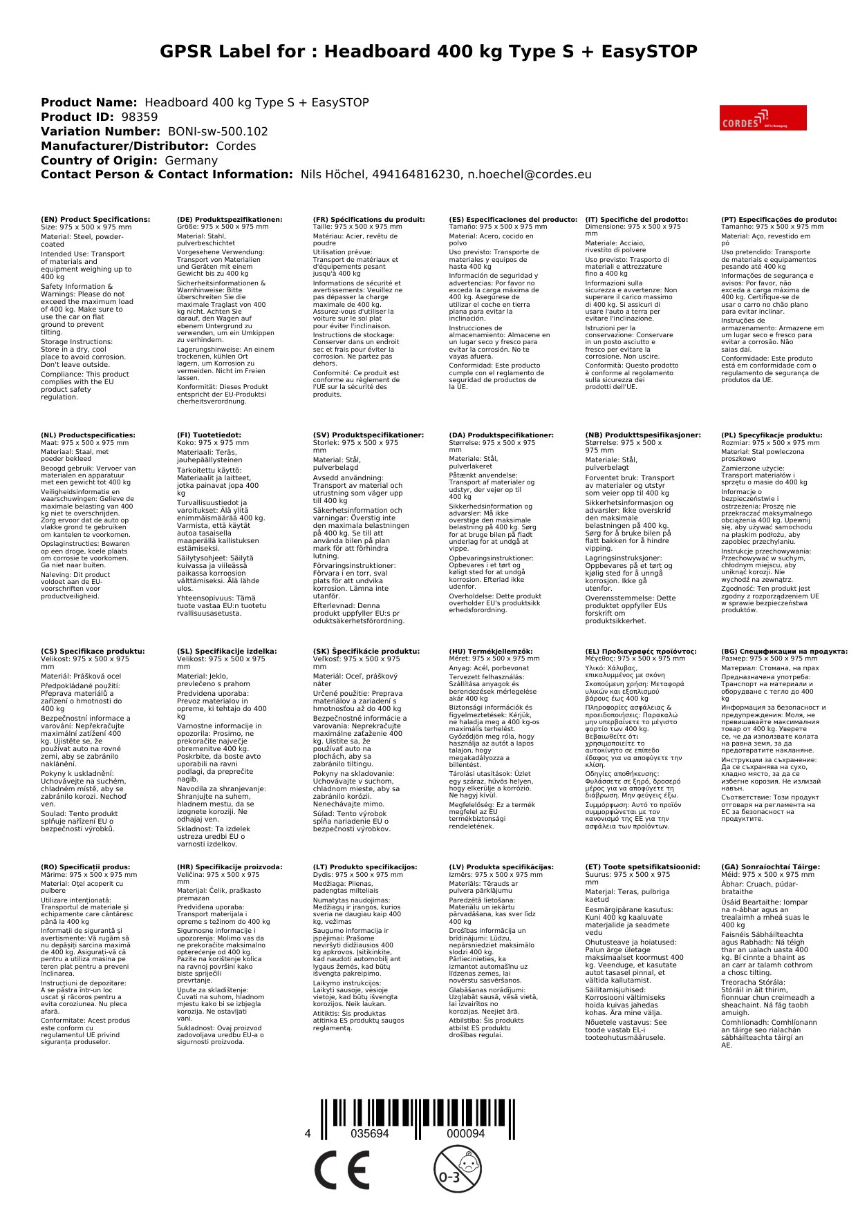 Der Wagen ist sehr gut verarbeitet und die EasySTOP-Funktion ist sehr praktisch. Ich kann den Stirnwandwagen nur weiterempfehlen. - Thomas L.