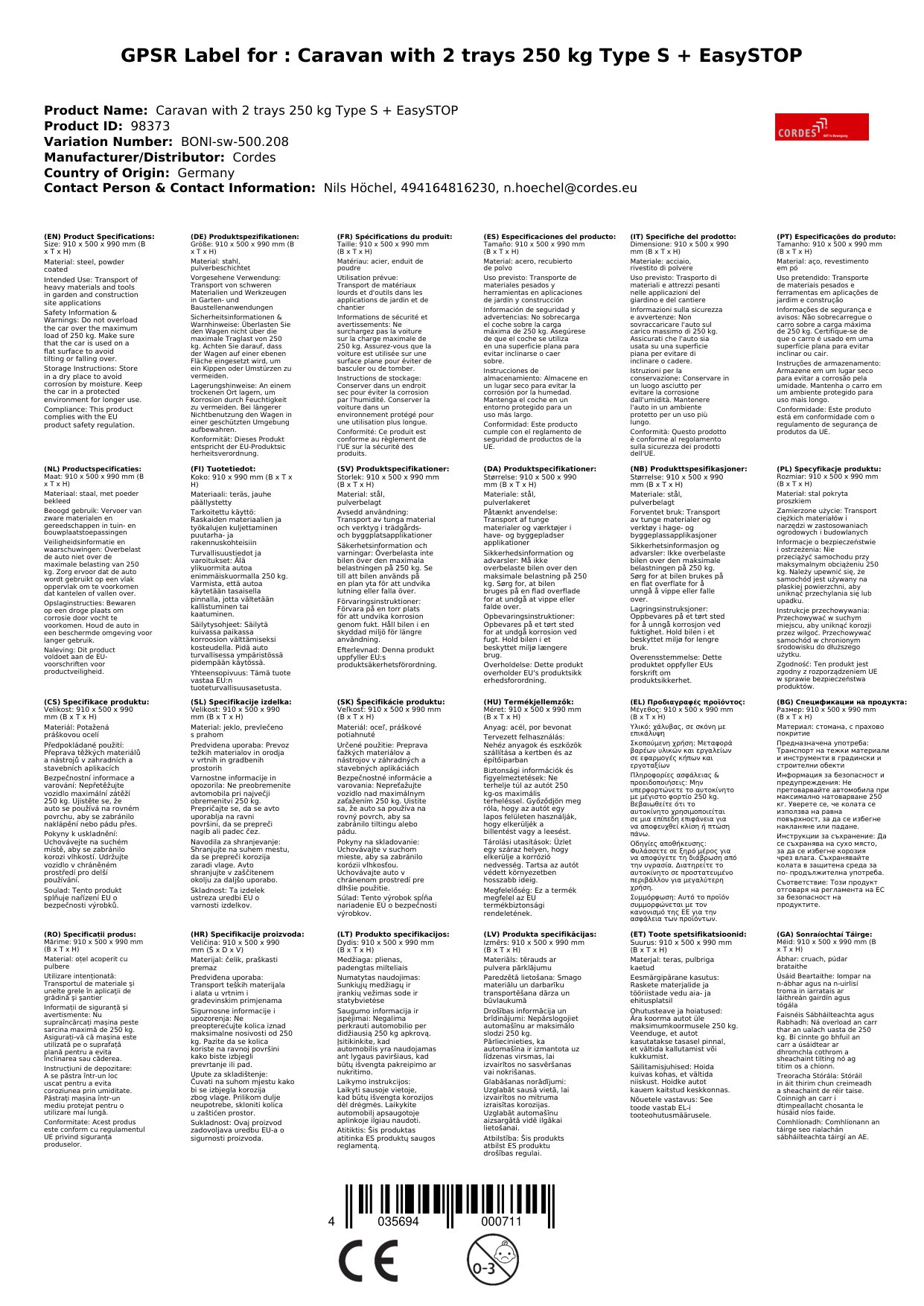 Der Wagen ist pulverbeschichtet und somit vor Korrosion geschützt. Dennoch empfehlen wir, ihn nicht dauerhaft im Außenbereich zu lagern.