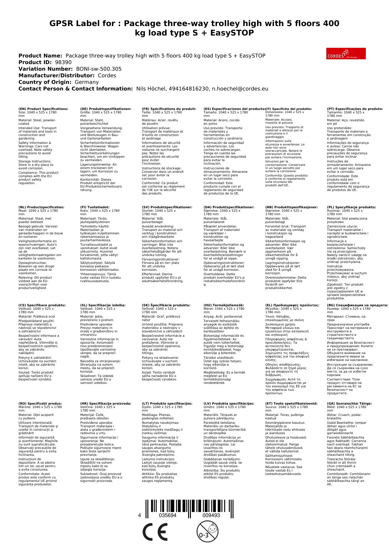 Stellen Sie eine Frage, um mehr über das Produkt zu erfahrenPaket-Dreiwandwagen hoch mit 5 Böden 400 kg Traglast Typ S + EasySTOP