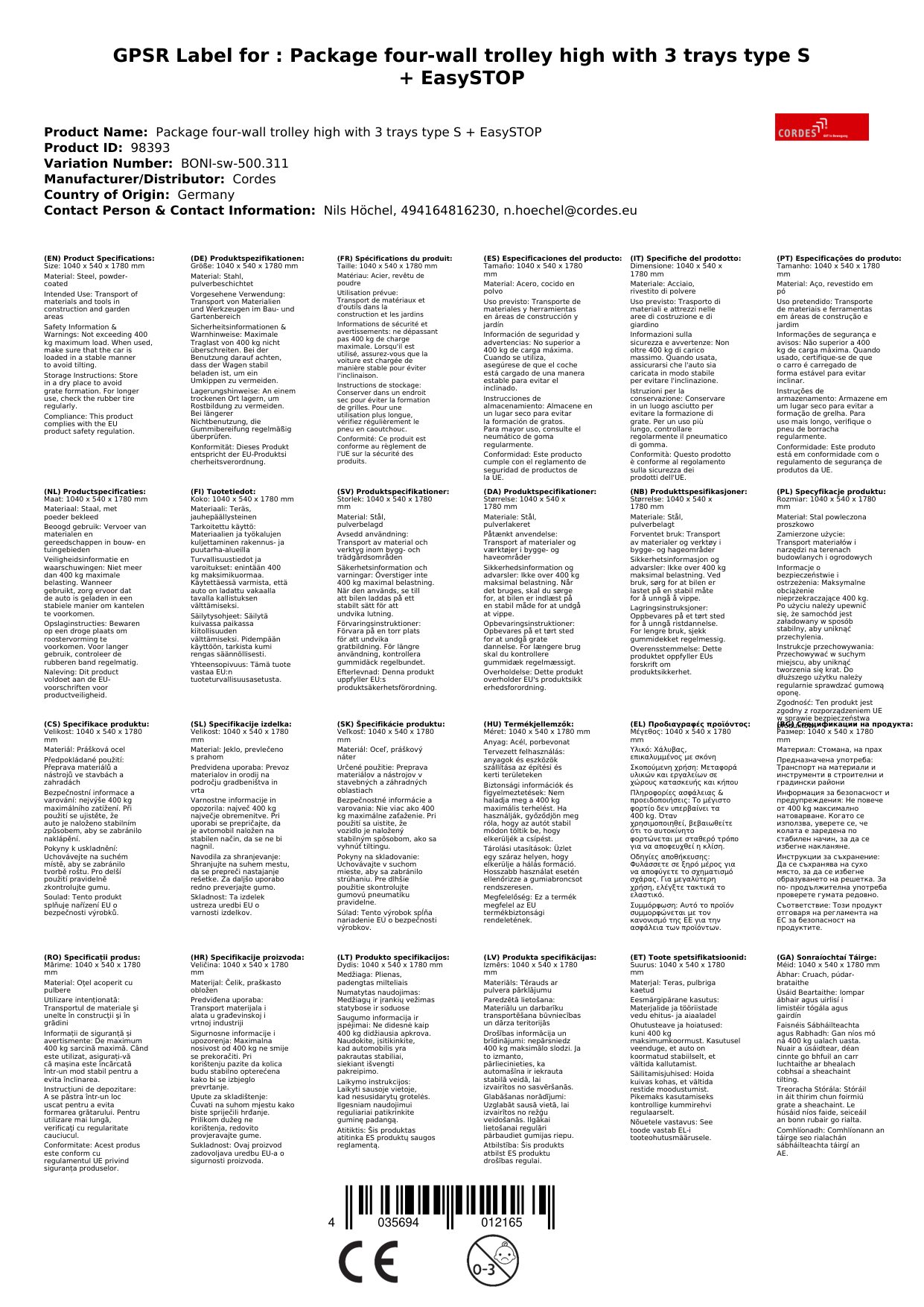 - Flexibel einsetzbar: Durch die variablen Böden und Längswände kann der Wagen an unterschiedliche Transportbedürfnisse angepasst werden.