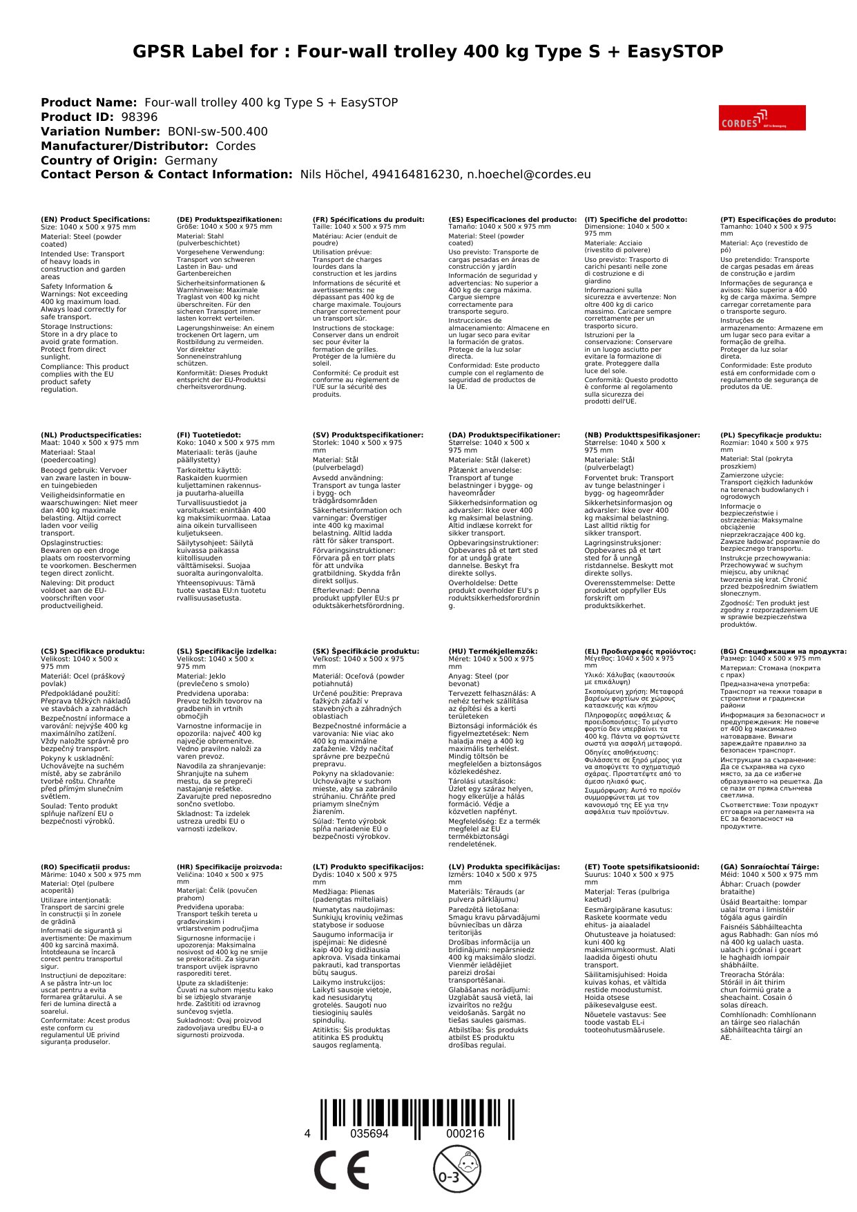 Vierwandwagen 400 kg Typ S + EasySTOP