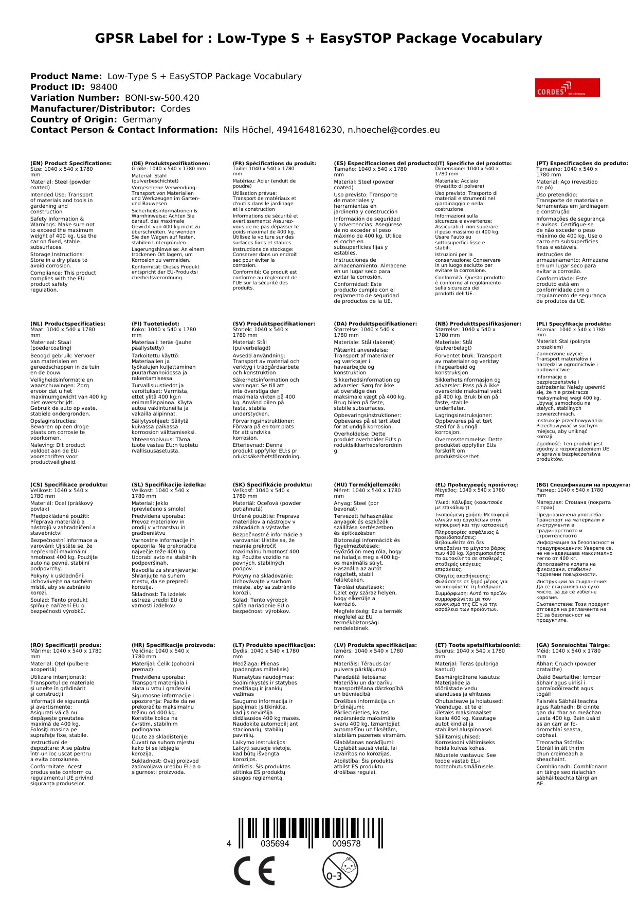 - Hohe Traglast: Mit einer Traglast von 400 kg können Sie schwere Lasten problemlos transportieren.